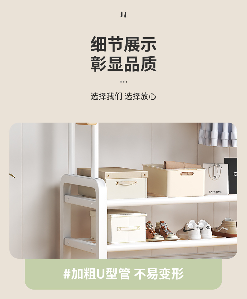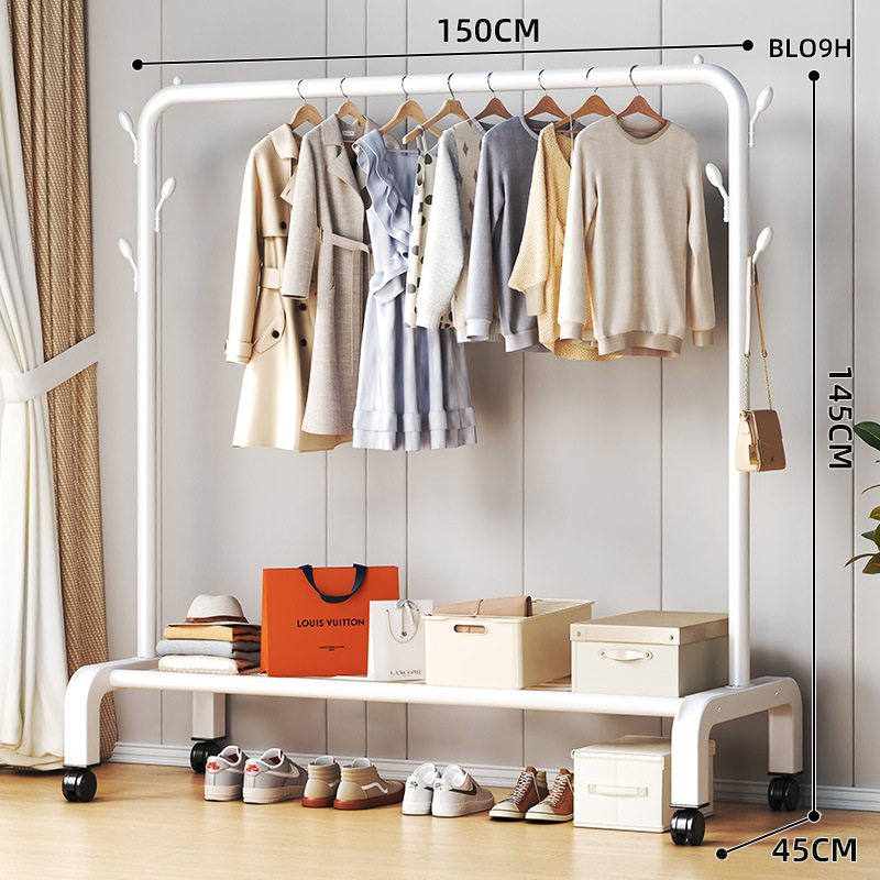 • 이중 극*이중층 150cm 흰색 바퀴가 달린 수납 선반 옷걸이 4개