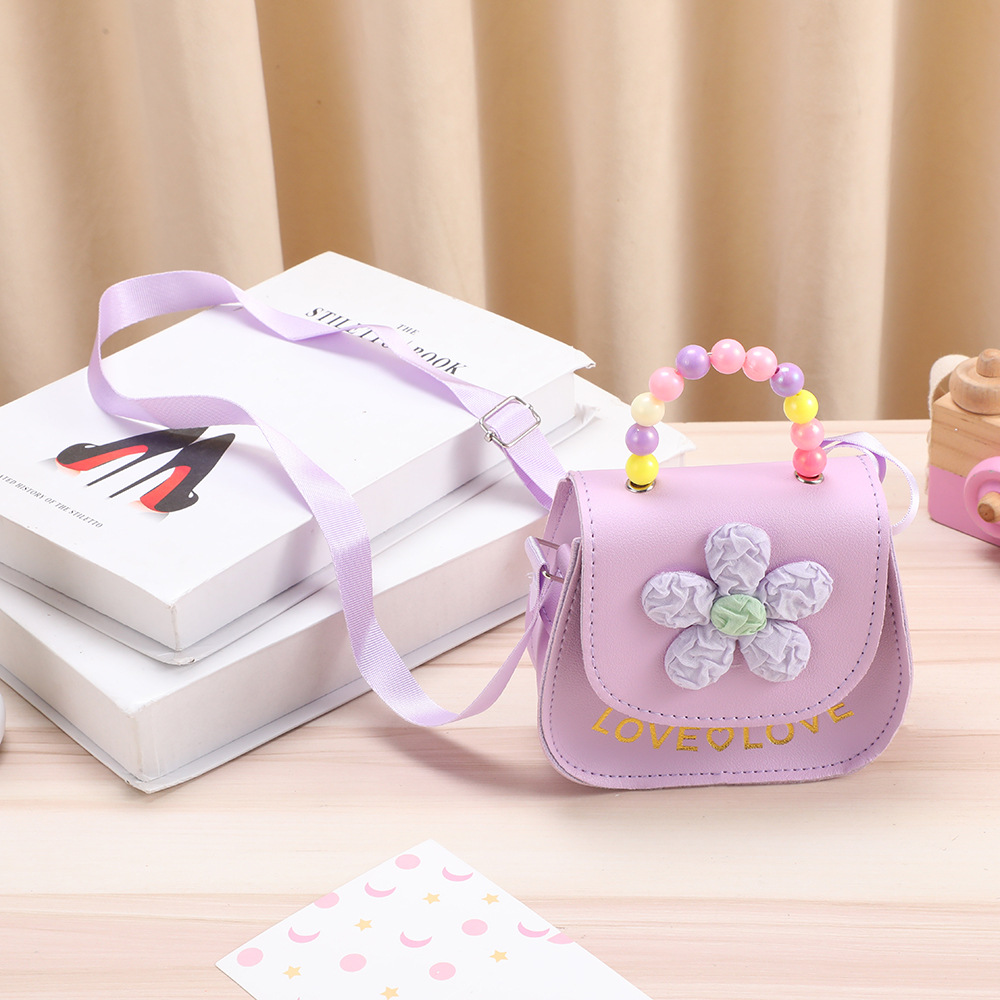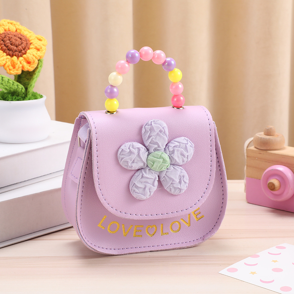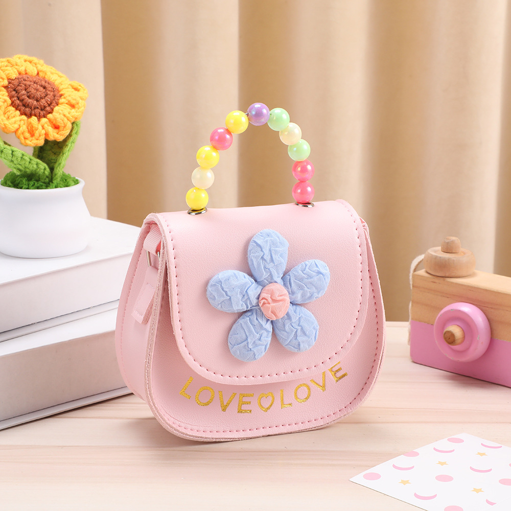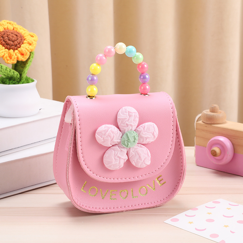어린이 동전 지갑 귀여운 핑크 작은 꽃 진주 핸드백 소녀 재미 아기 대각선 어깨 가방 도매 저장스토어 가기