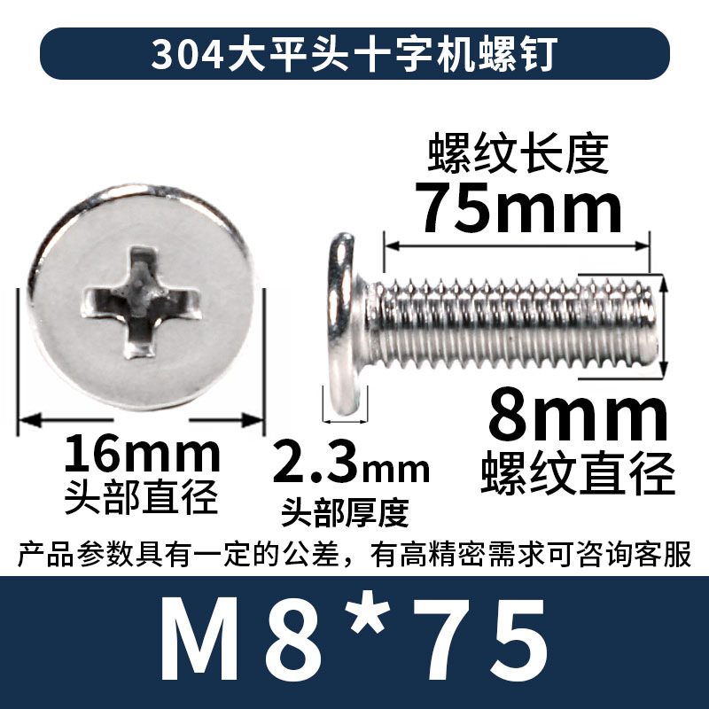 304 스테인레스 스틸 크로스 대형 플랫 헤드 M8 스크류 도매 CM 스크류 플랫 헤드 얇은 헤드 머신 치아 나사 M4/M5스토어 가기