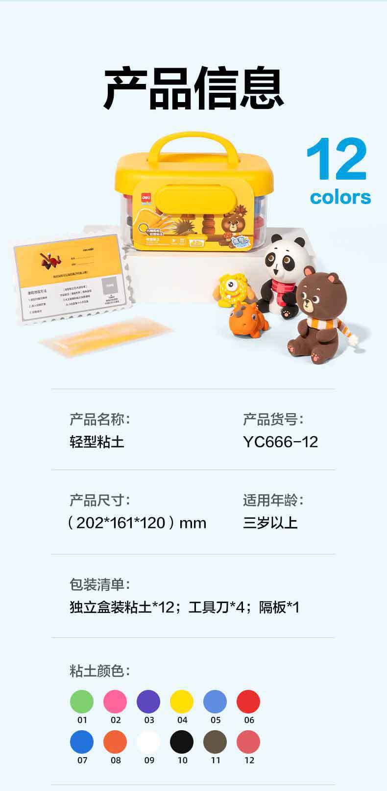 델리 어린이 초경량 점토 36색 친환경 및 안전 12색 플라스틱 점토 수제 장난감 식품 등급 24색