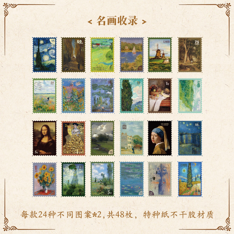 아티스트 Ins 스타일 아트 유화 유명한 그림 티켓 스텁 복고풍 손 계정 장식 스티커 diy 휴대 전화 물 컵 스티커스토어 가기