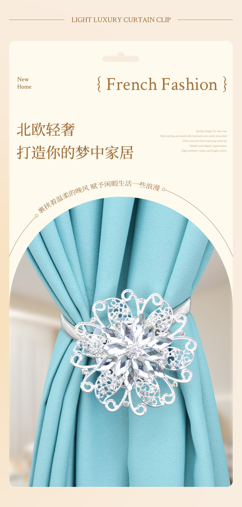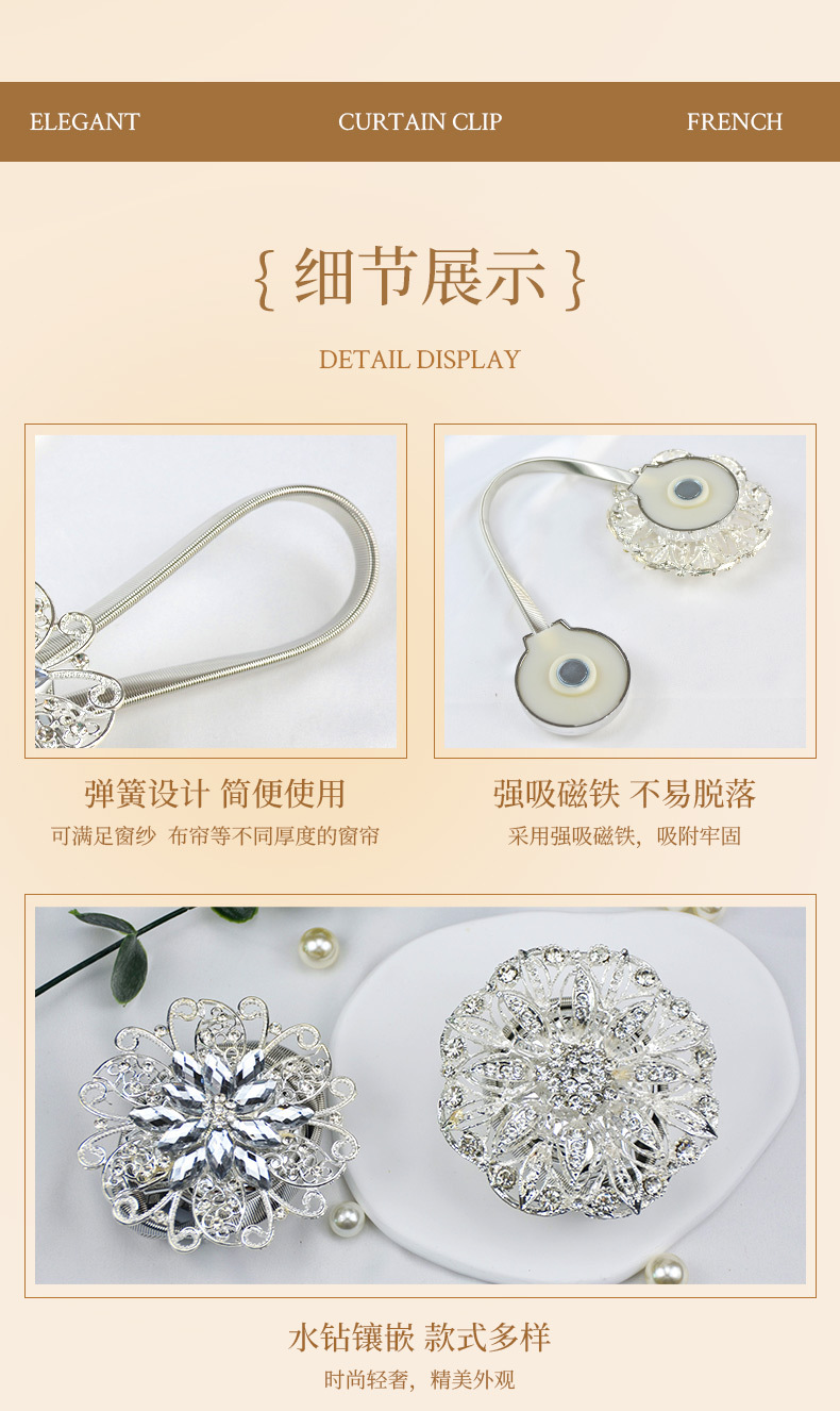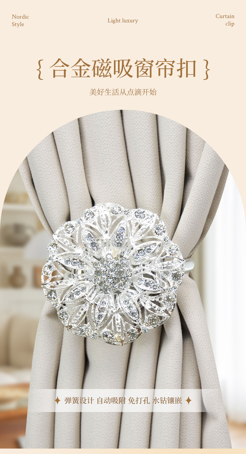 유럽과 미국의 가벼운 럭셔리 커튼 버클 합금 마그네틱 버클 거실 침실 간단한 커튼 봄 스트랩 홈 장식 국경스토어 가기