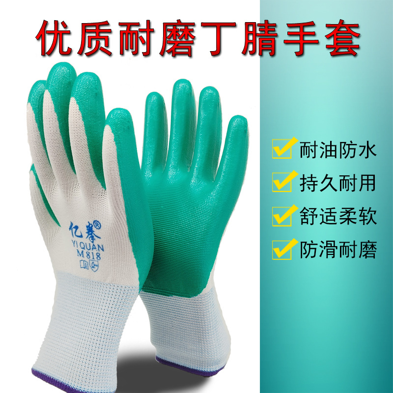노동 보호 장갑 내마모성 니트릴 고무 흰색 거즈 녹색 고무 니트릴 장갑 내유성 산 및 알칼리 방지 작업 장갑스토어 가기
