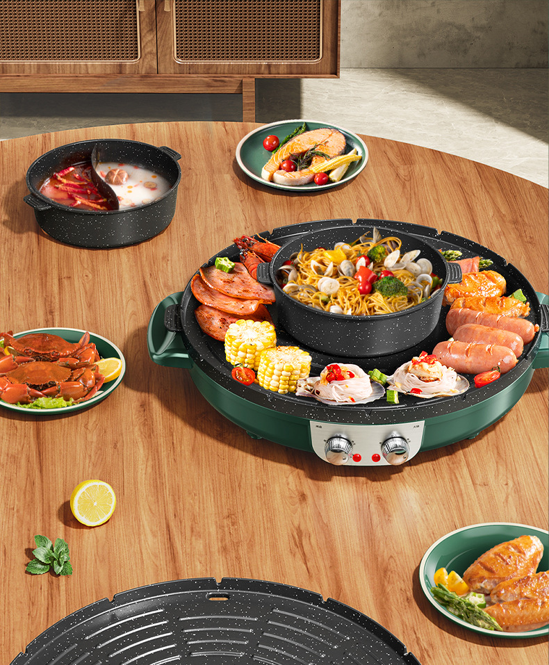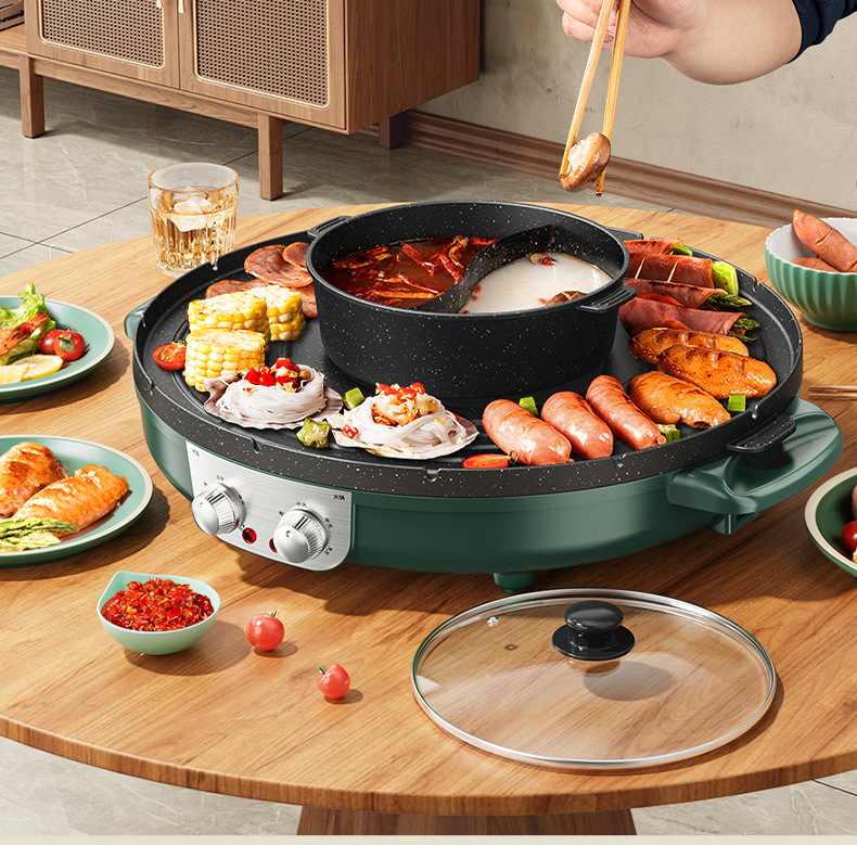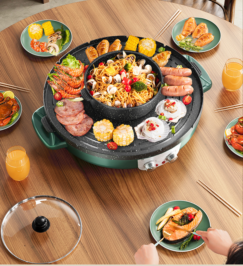 맞춤형 다기능 전기 냄비, 전기 그릴, 올인원 냄비, 가정용 한국식 그릴 팬, 두 번 사용 가능한 생선 및 바베큐 기계스토어 가기