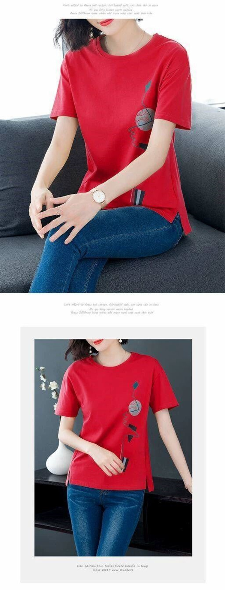 중년 여성 반팔 티셔츠 여성 2025 새로운 여름 한국 스타일 느슨한 대형 지방 MM 티셔츠 프린트 탑스토어 가기