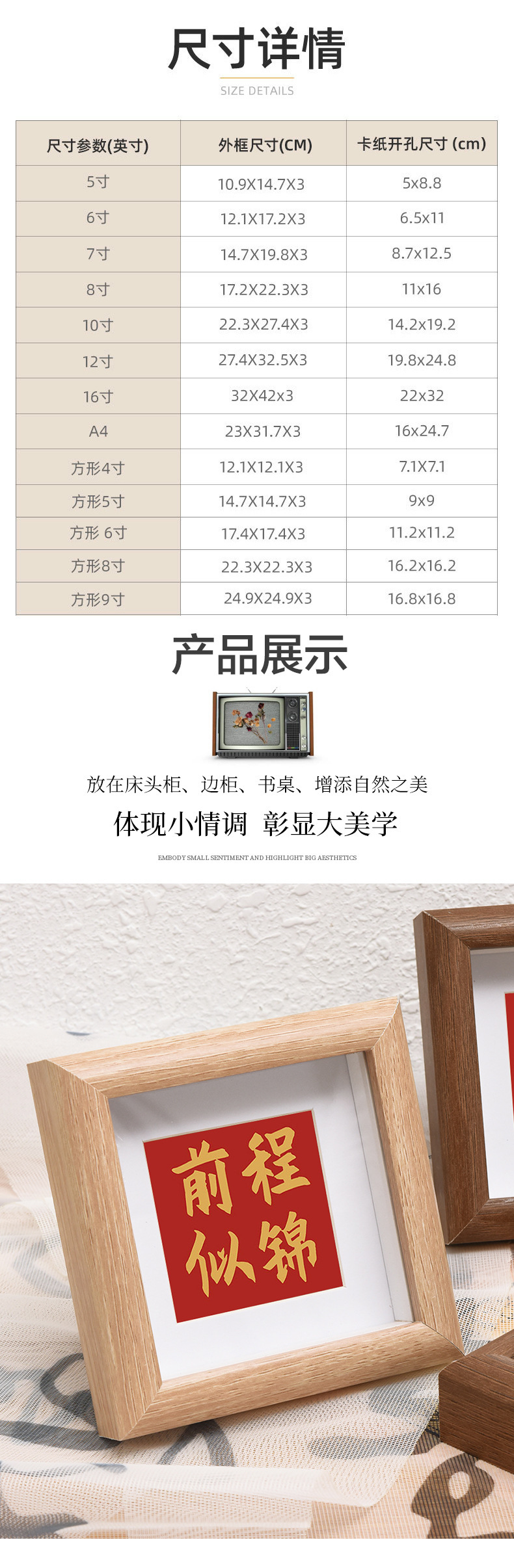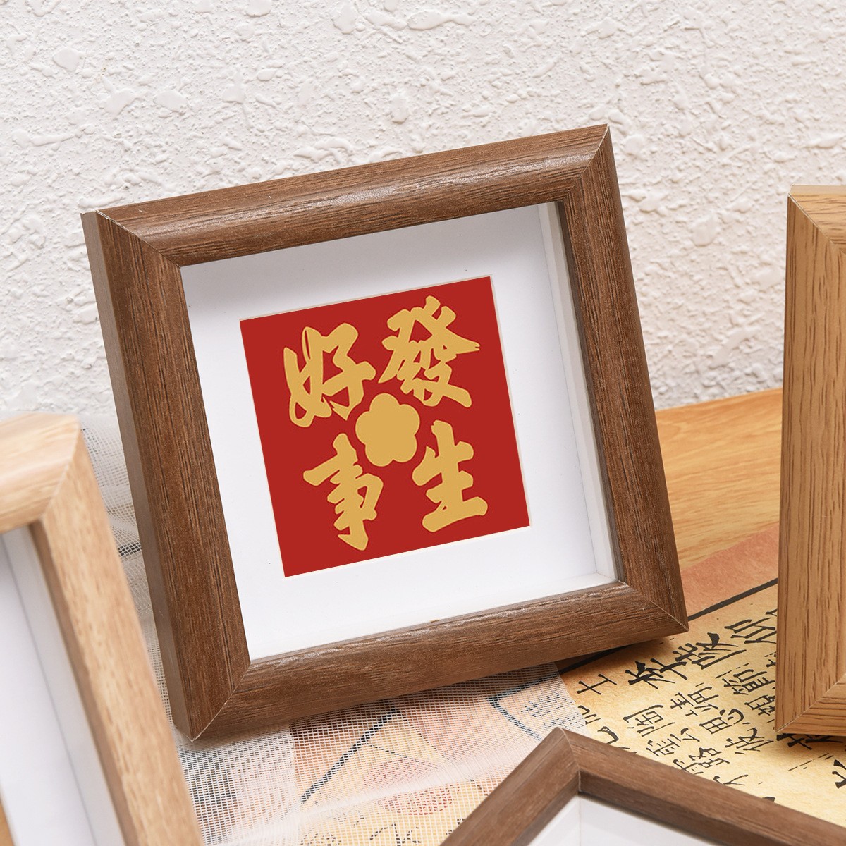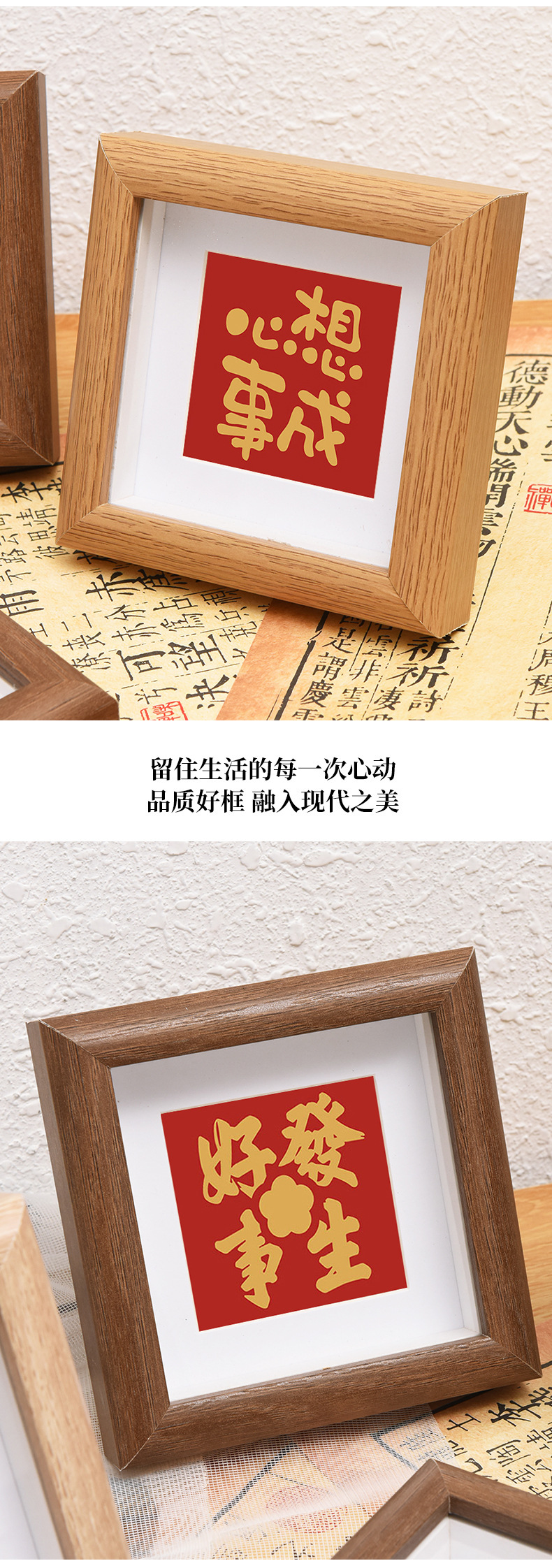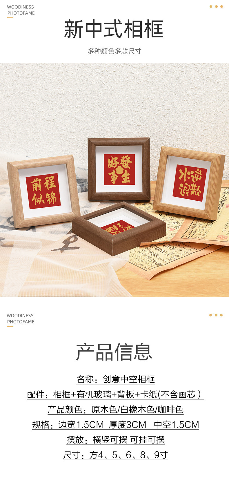 Qianhong 새로운 중국 할로우 포토 프레임 광장 4 인치 8 인치 스퀘어 미니 포토 프레임 서예 및 그림 장착