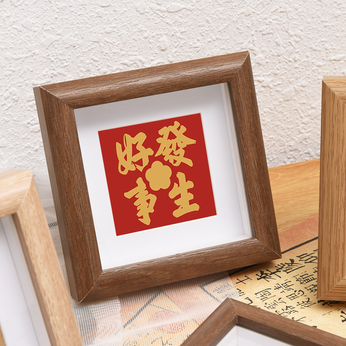 Qianhong 새로운 중국 할로우 포토 프레임 광장 4 인치 8 인치 스퀘어 미니 포토 프레임 서예 및 그림 장착스토어 가기