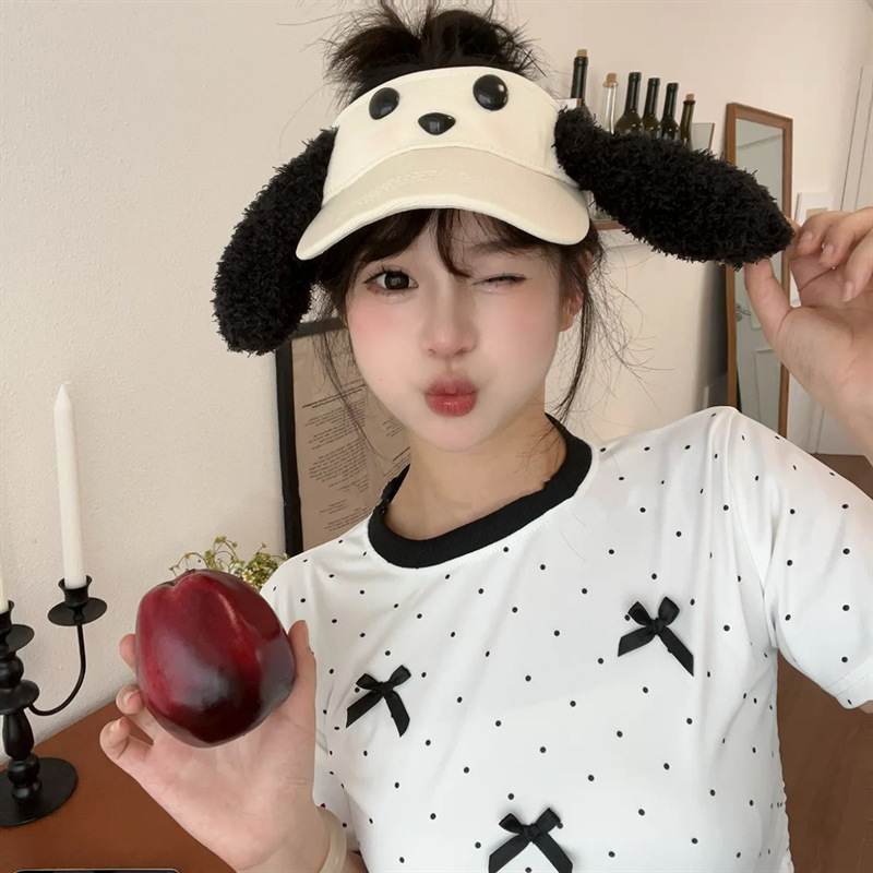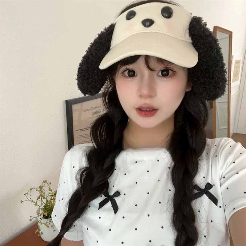 케이크 그냥 개 태양 보호 모자 귀여운 모자 야외 만화 UV 보호 여성의 여름 빈 탑 야구 모자