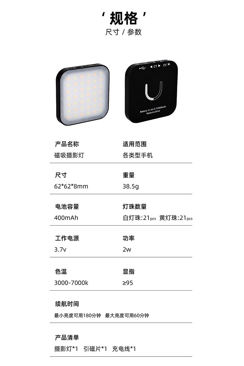 电池容量:400mAh