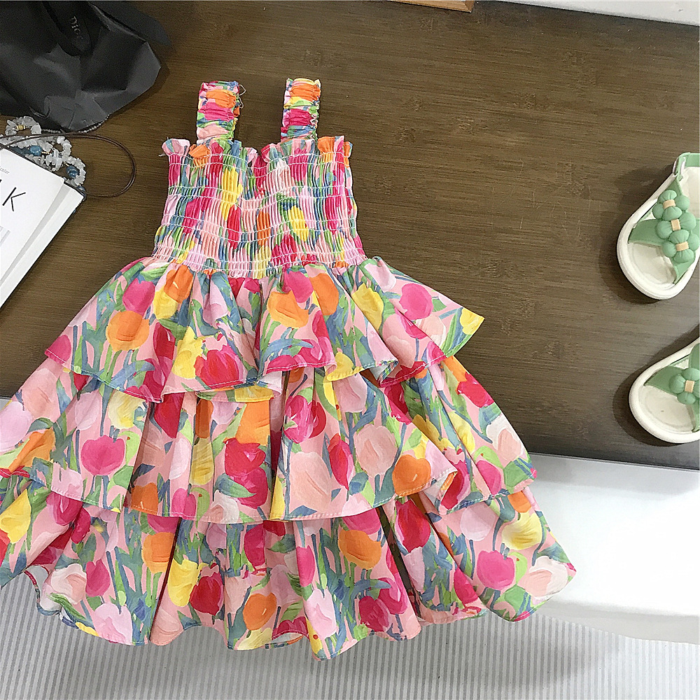 소녀의 슬링 원피스 여름 새로운 어린이 서양식 프라이드 스트리트 비치 원피스 아기의 여름 원피스 꽃 스커트 대외 무역