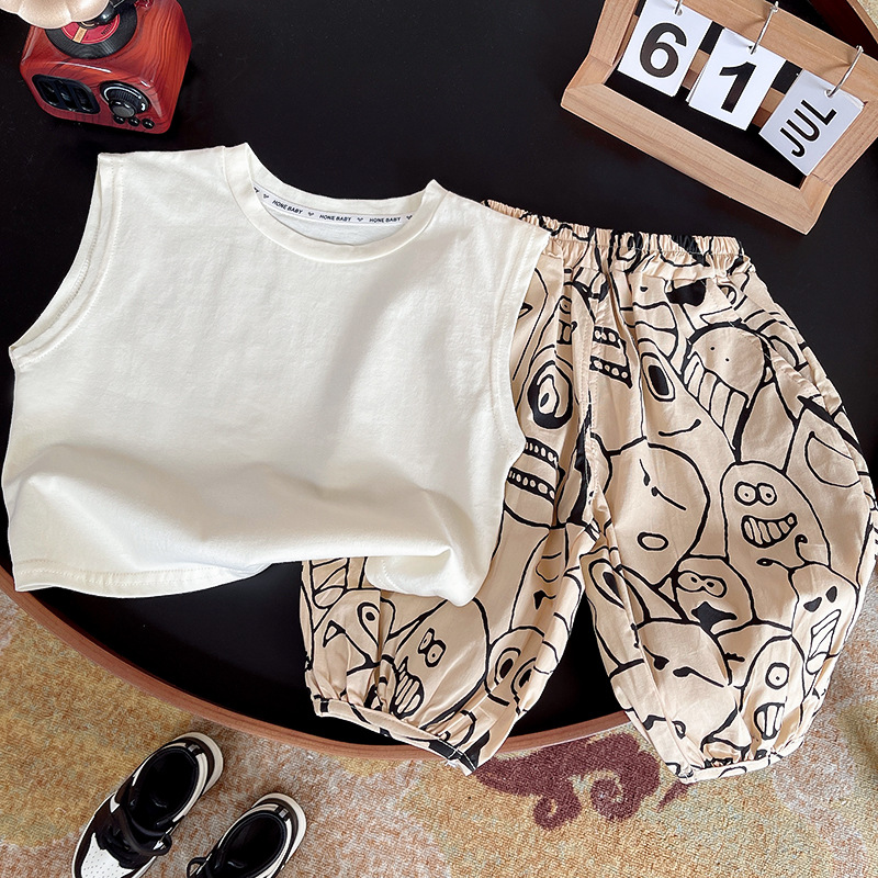 소년의 여름 세트 새로운 도착 웨스턴 스타일 소년의 아기의 얇은 민소매 투피스 세트 아기의 여름 캐주얼 조끼 트렌디스토어 가기