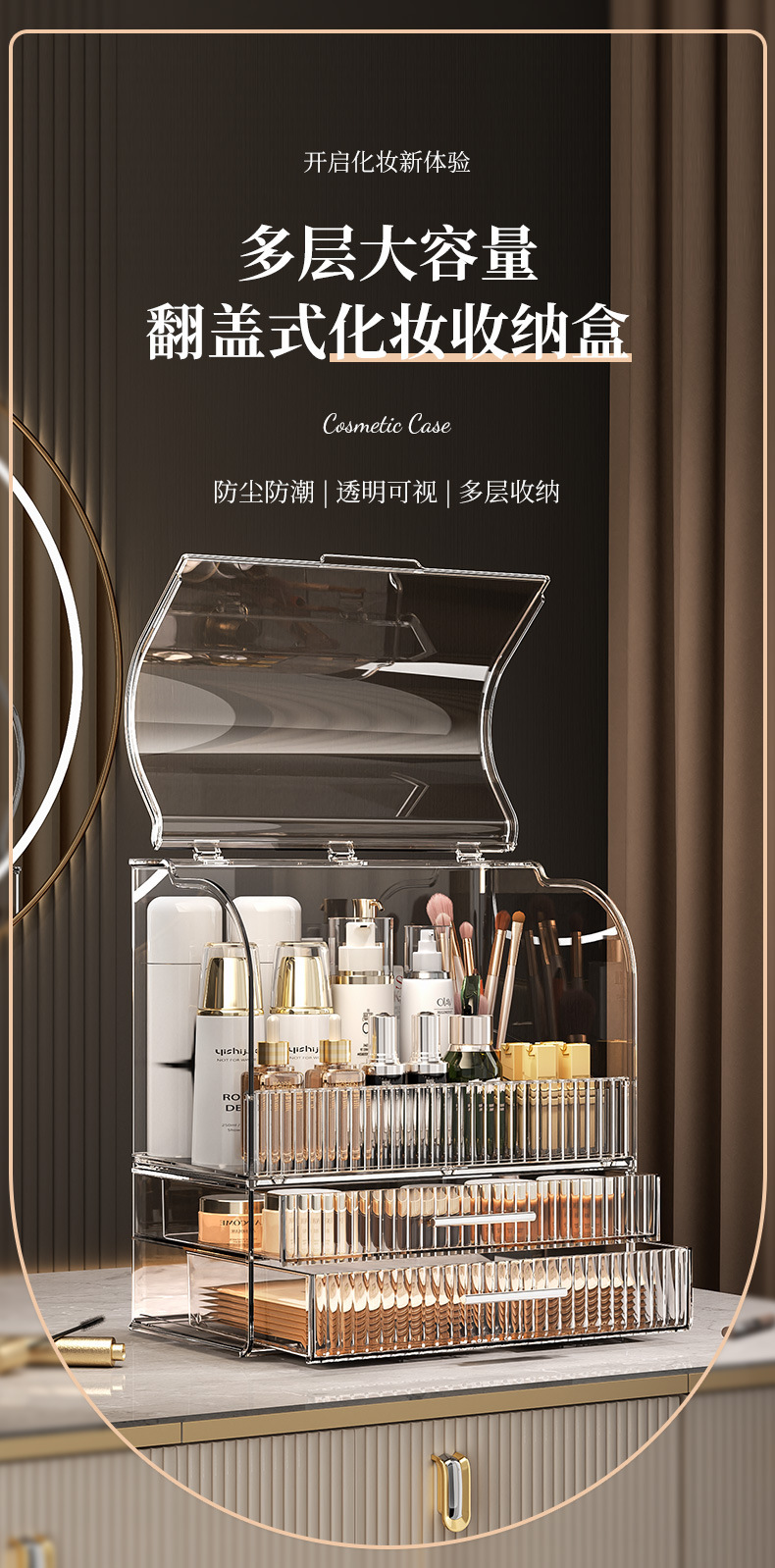 화장품 저장 상자 데스크탑 먼지 방지 드레싱 테이블 스킨 케어 제품 립스틱 저장 랙 투명 아크릴 저장 상자 캐비닛스토어 가기