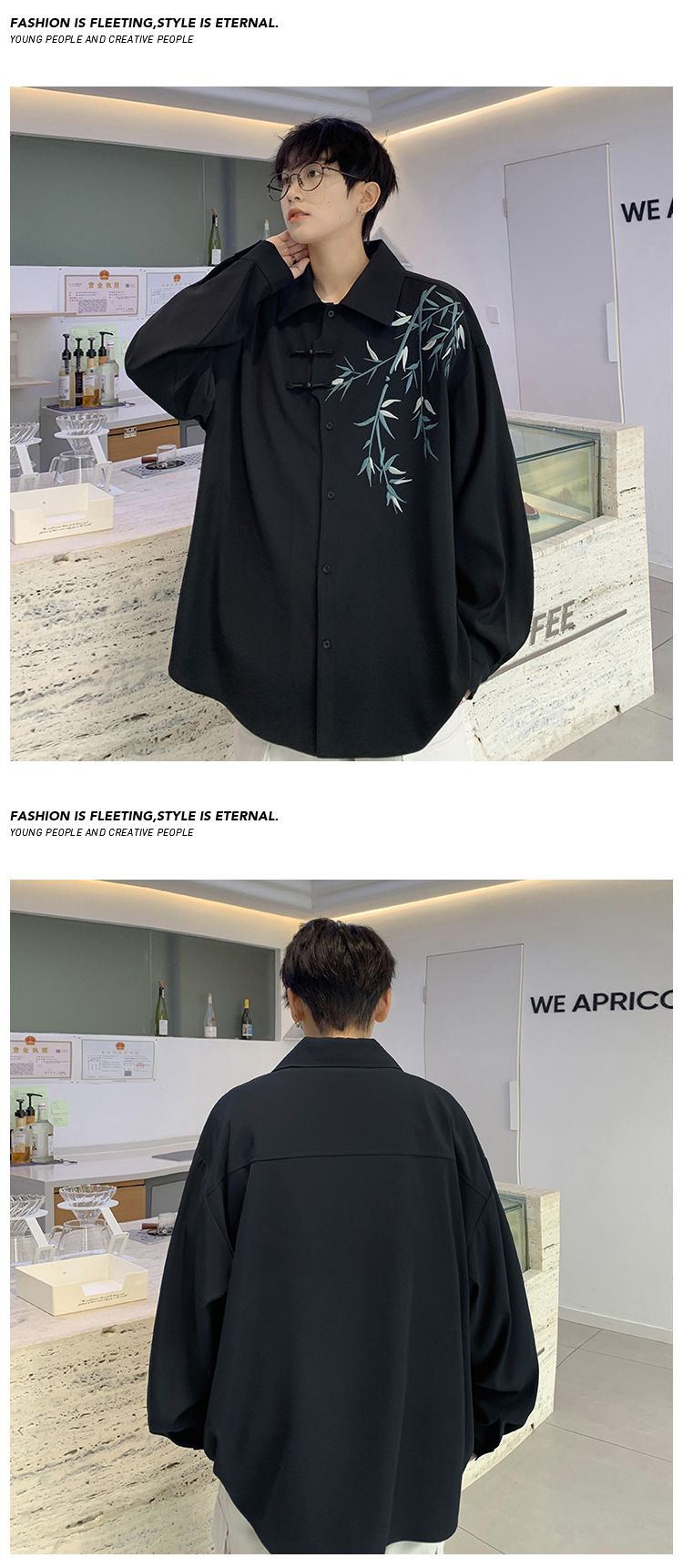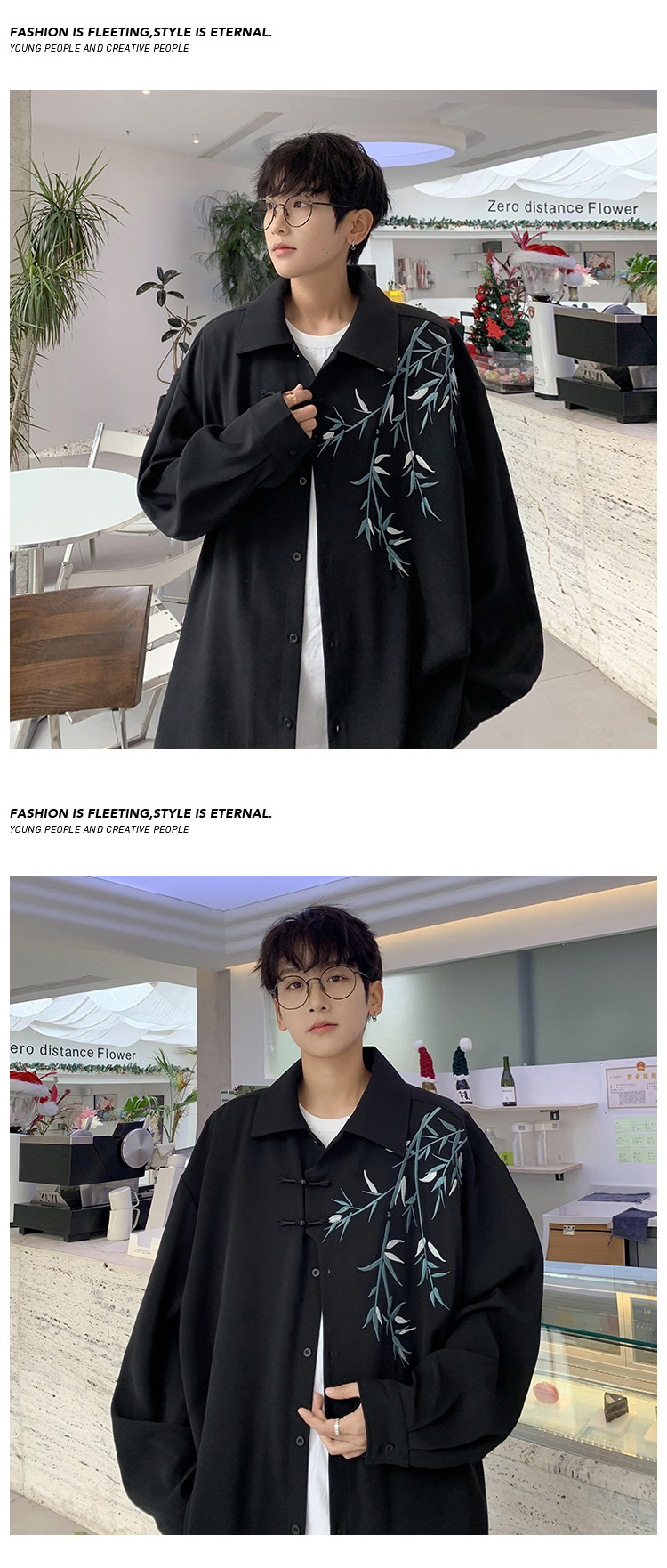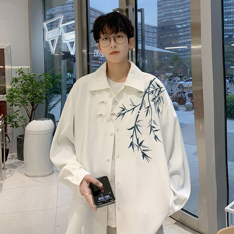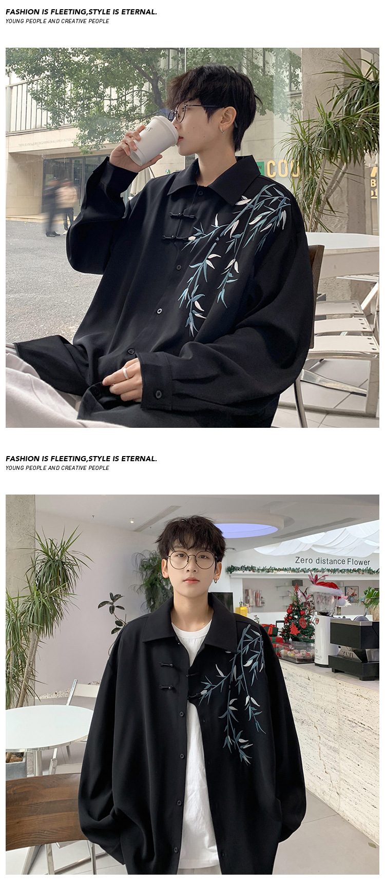 새로운 중국 스타일 국가 스타일 긴 소매 셔츠 소년 봄과 가을 느슨한 수놓은 한후 버클 탕 세트 도교 로브 셔츠 재킷스토어 가기