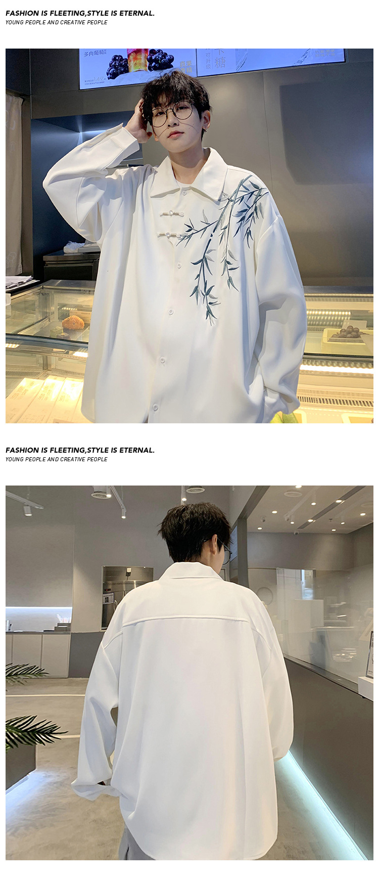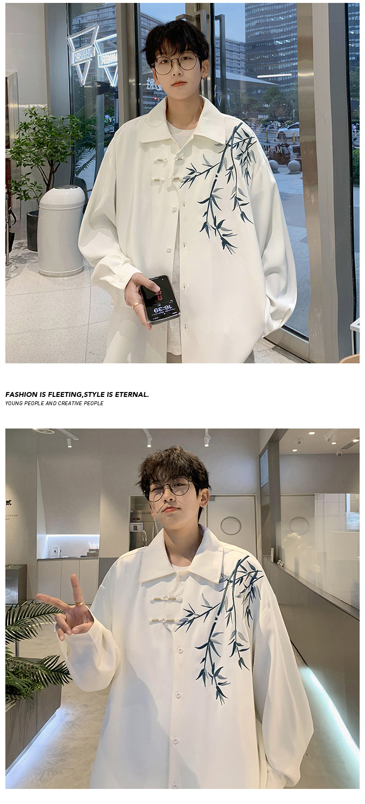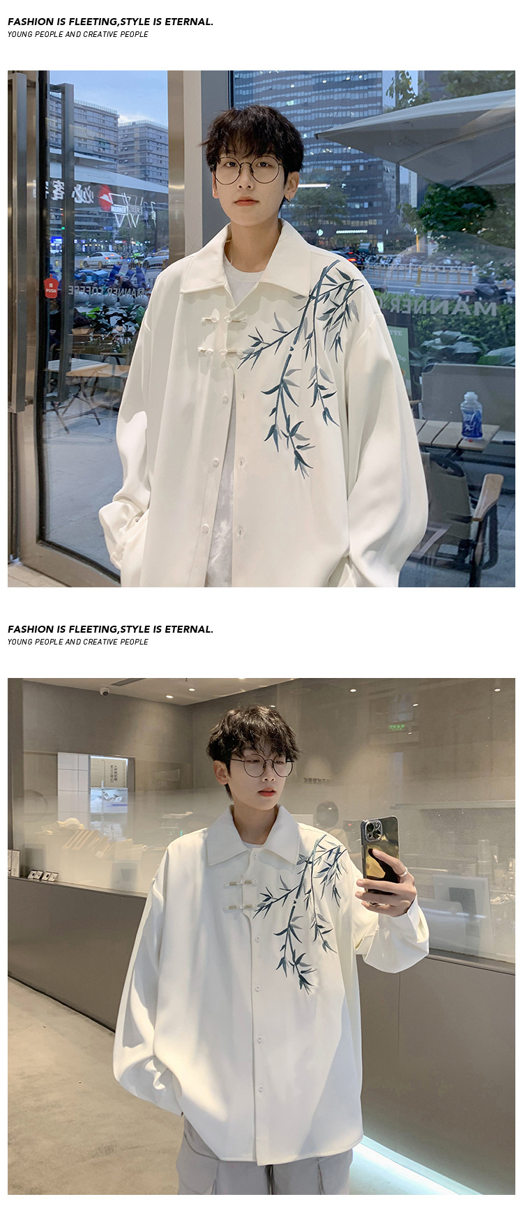 새로운 중국 스타일 국가 스타일 긴 소매 셔츠 소년 봄과 가을 느슨한 수놓은 한후 버클 탕 세트 도교 로브 셔츠 재킷스토어 가기