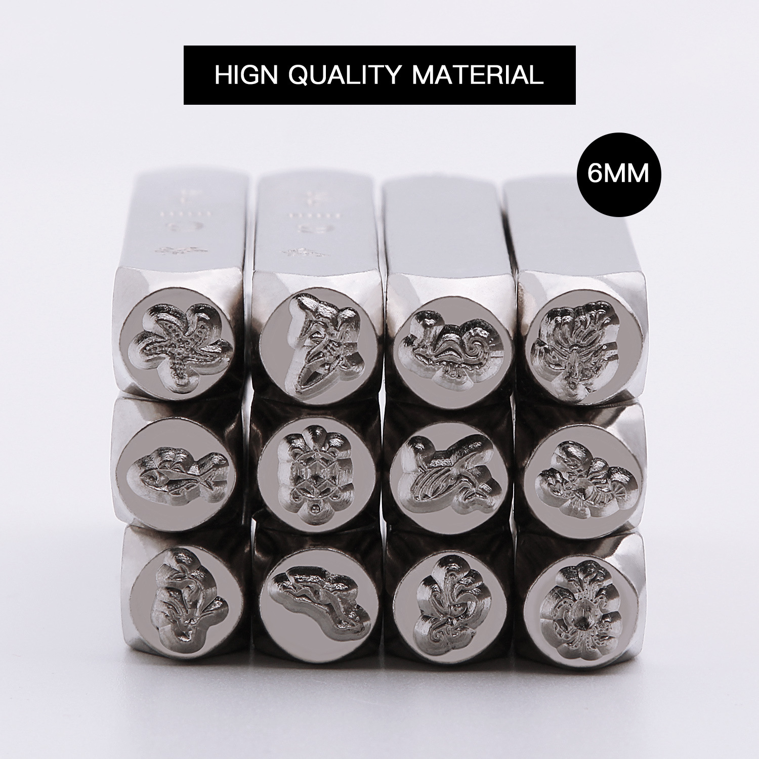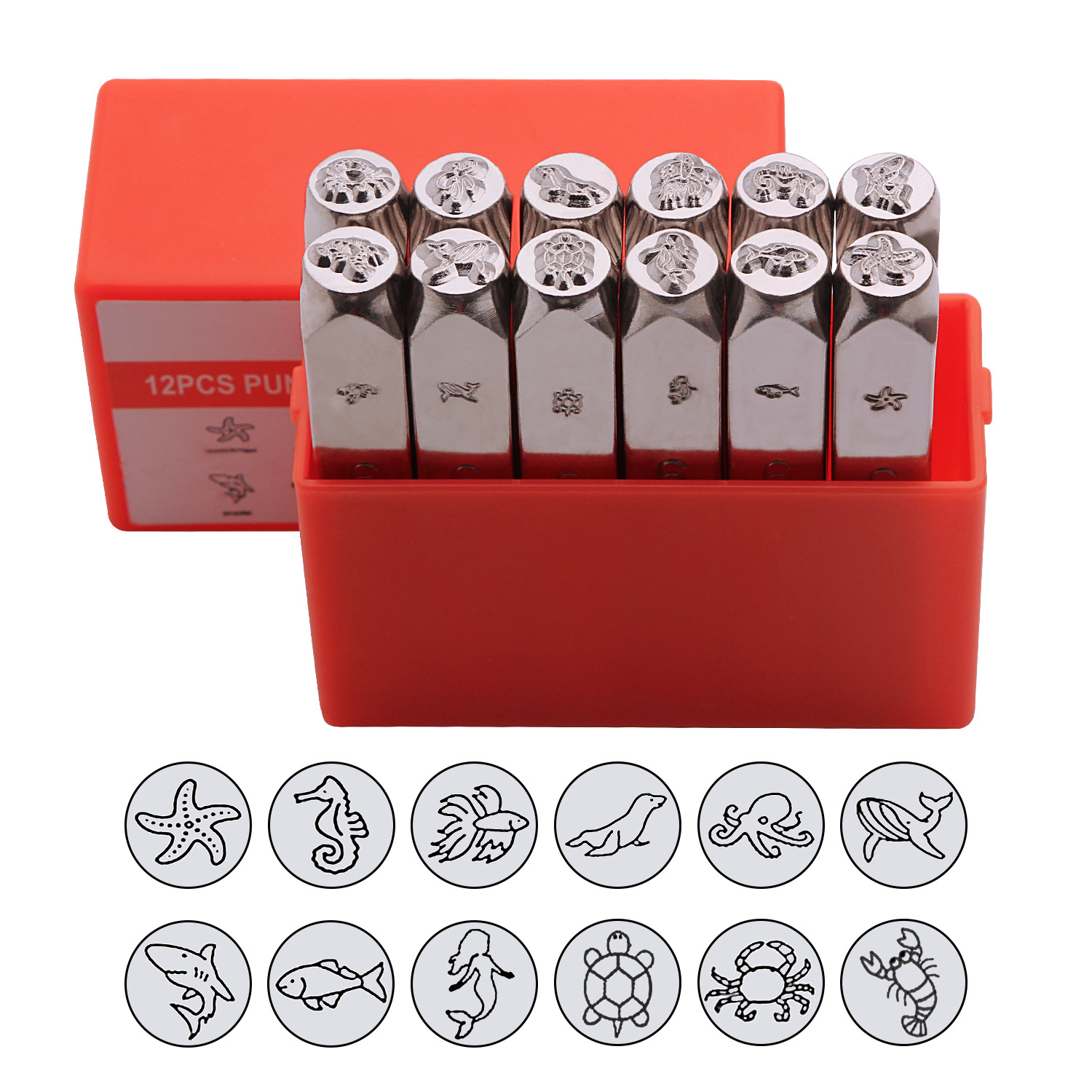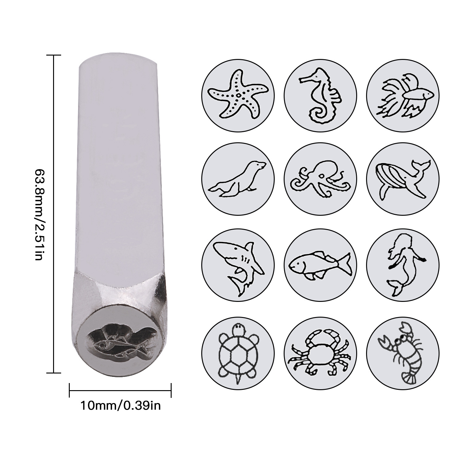 12PC 패턴 인쇄 및 펀칭 바다 시리즈 불가사리 펀치 끌 가죽 보석 반지 보석 조각 DIY 도구
