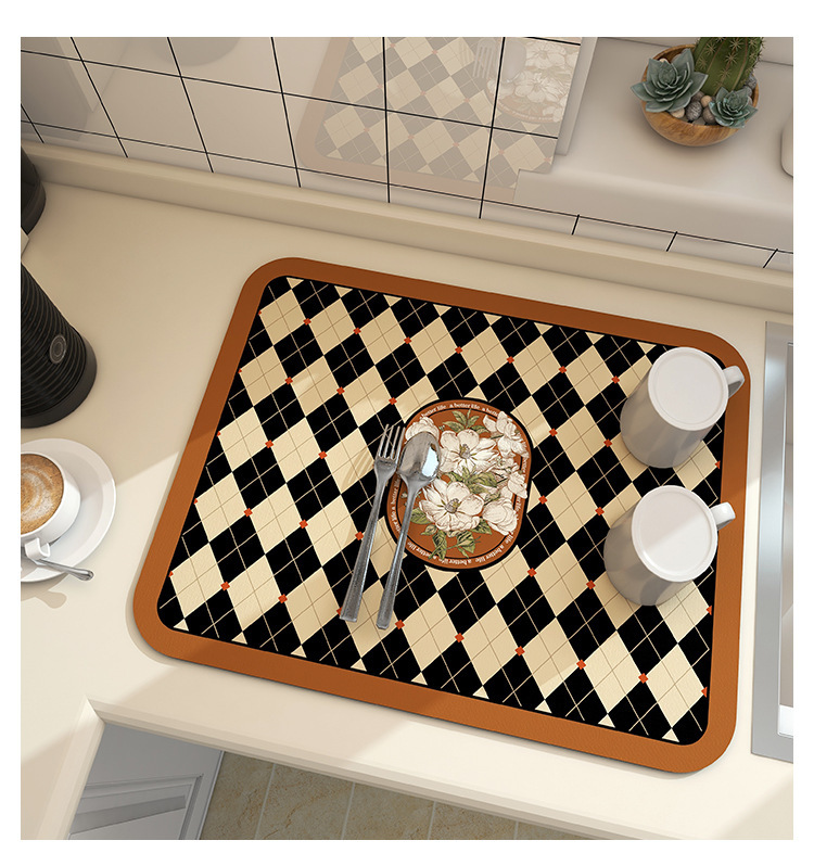 국경 간 temu 주방 조리대 배수 매트 흡수성 빠른 건조 미끄럼 방지 매트 데스크탑 접시 건조 얼룩 방지 매트