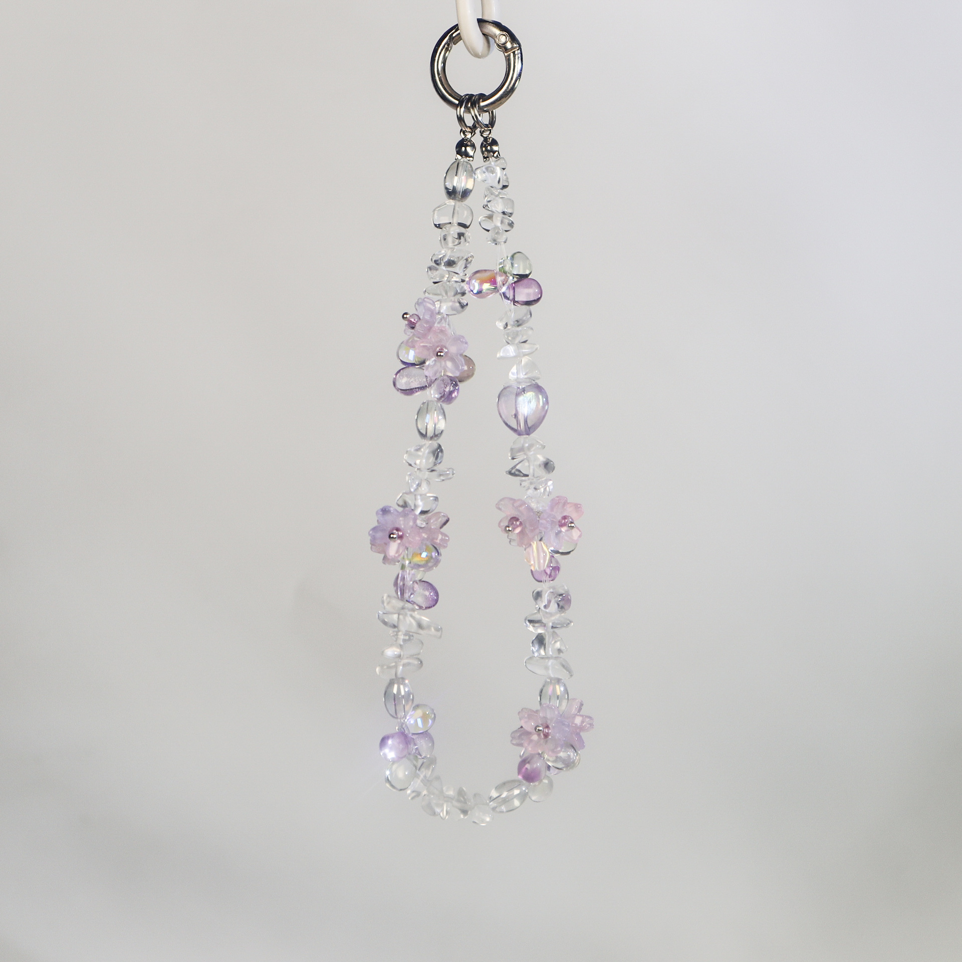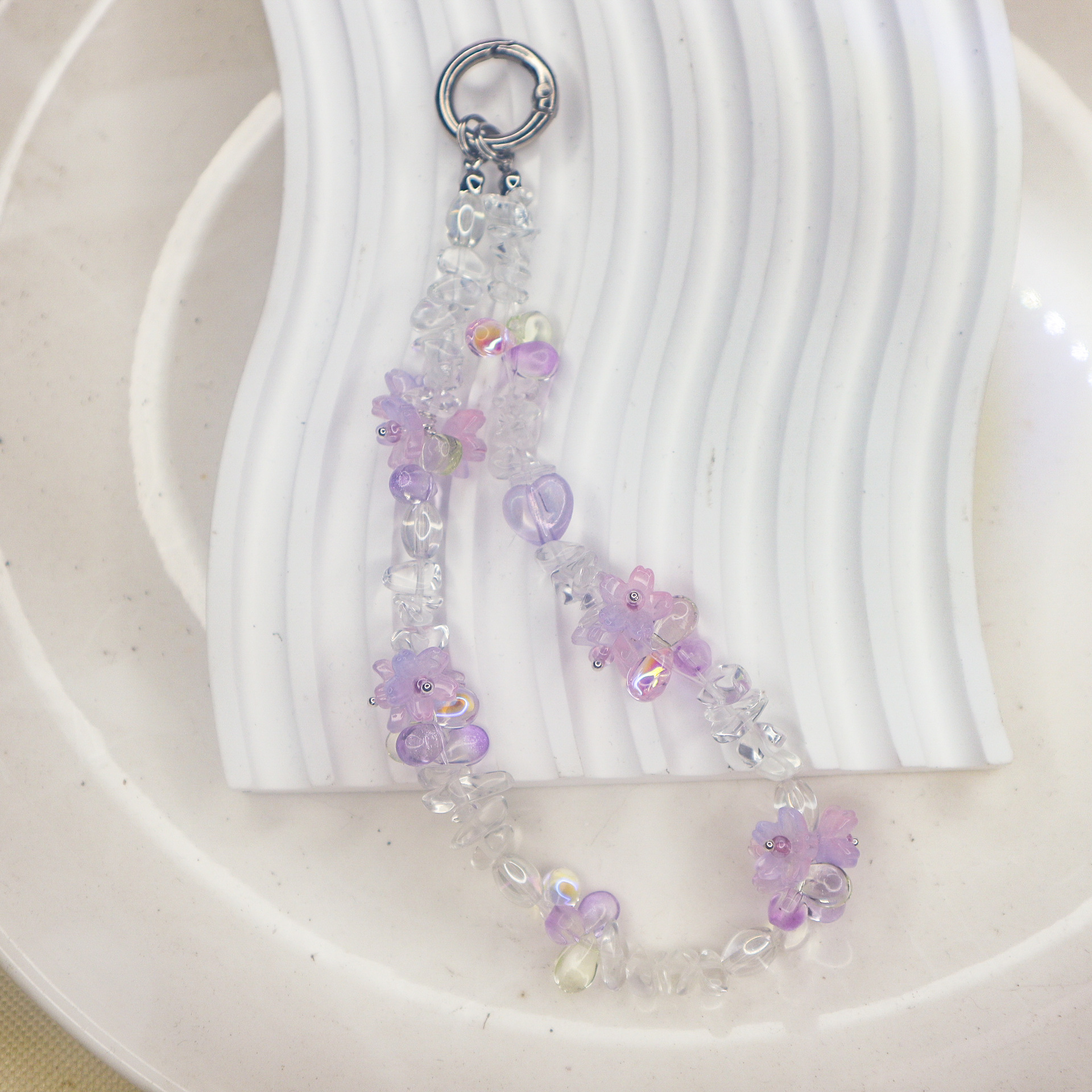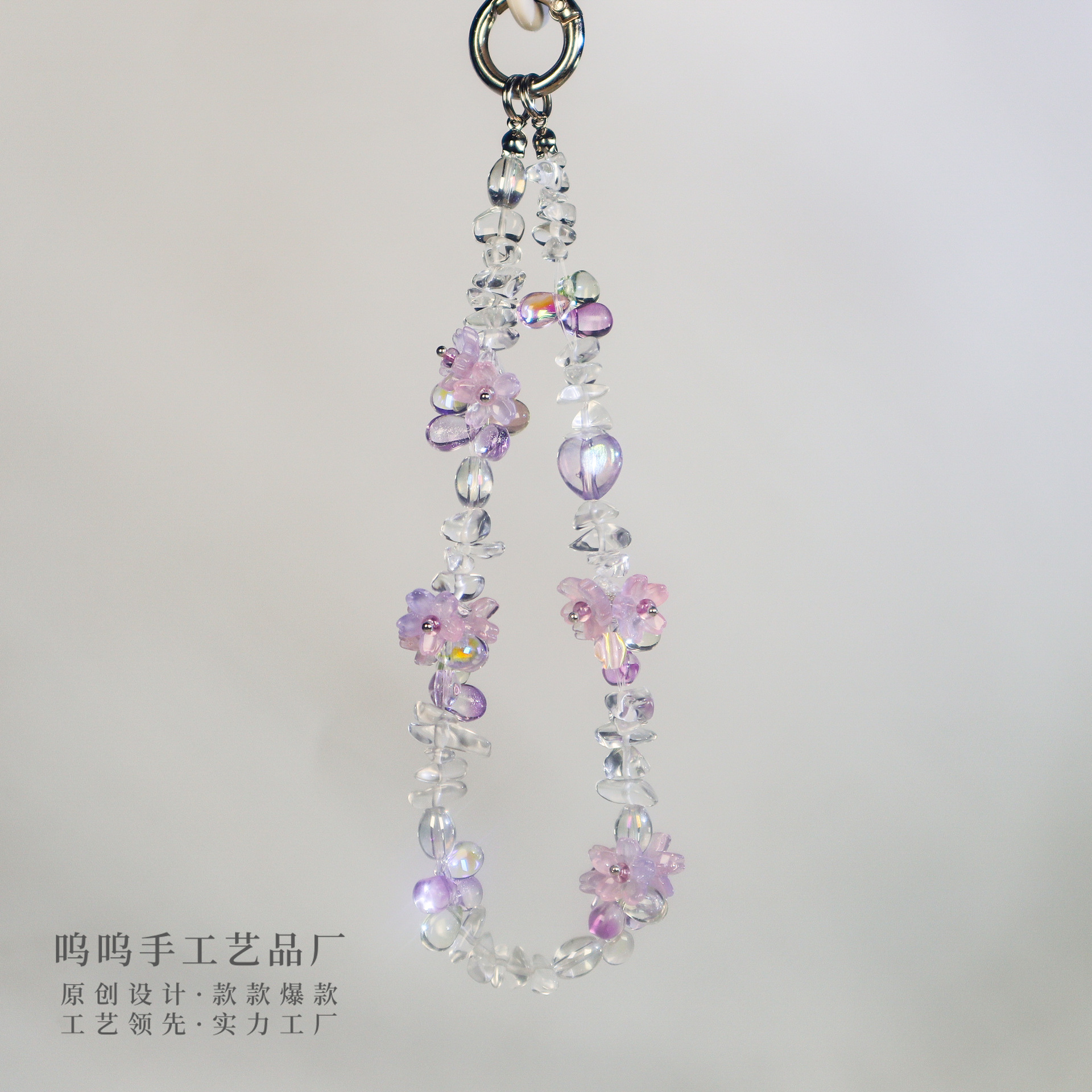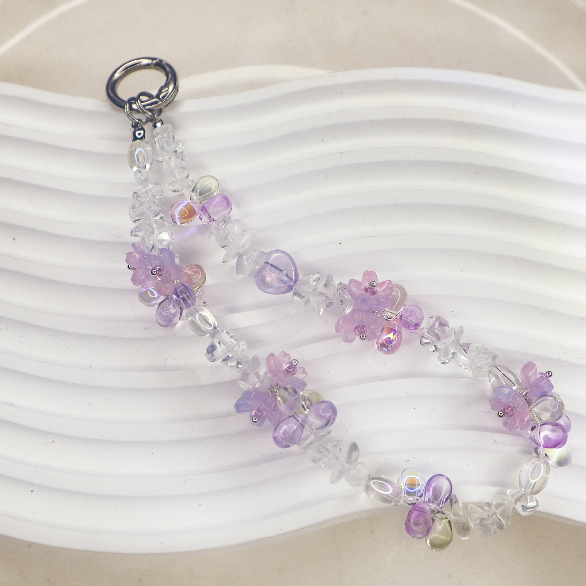 우 오리지널 퍼플 스톤 가든 휴대 전화 체인 틈새 바람 나비 투명 꽃 ccd 카메라 매달린 체인스토어 가기