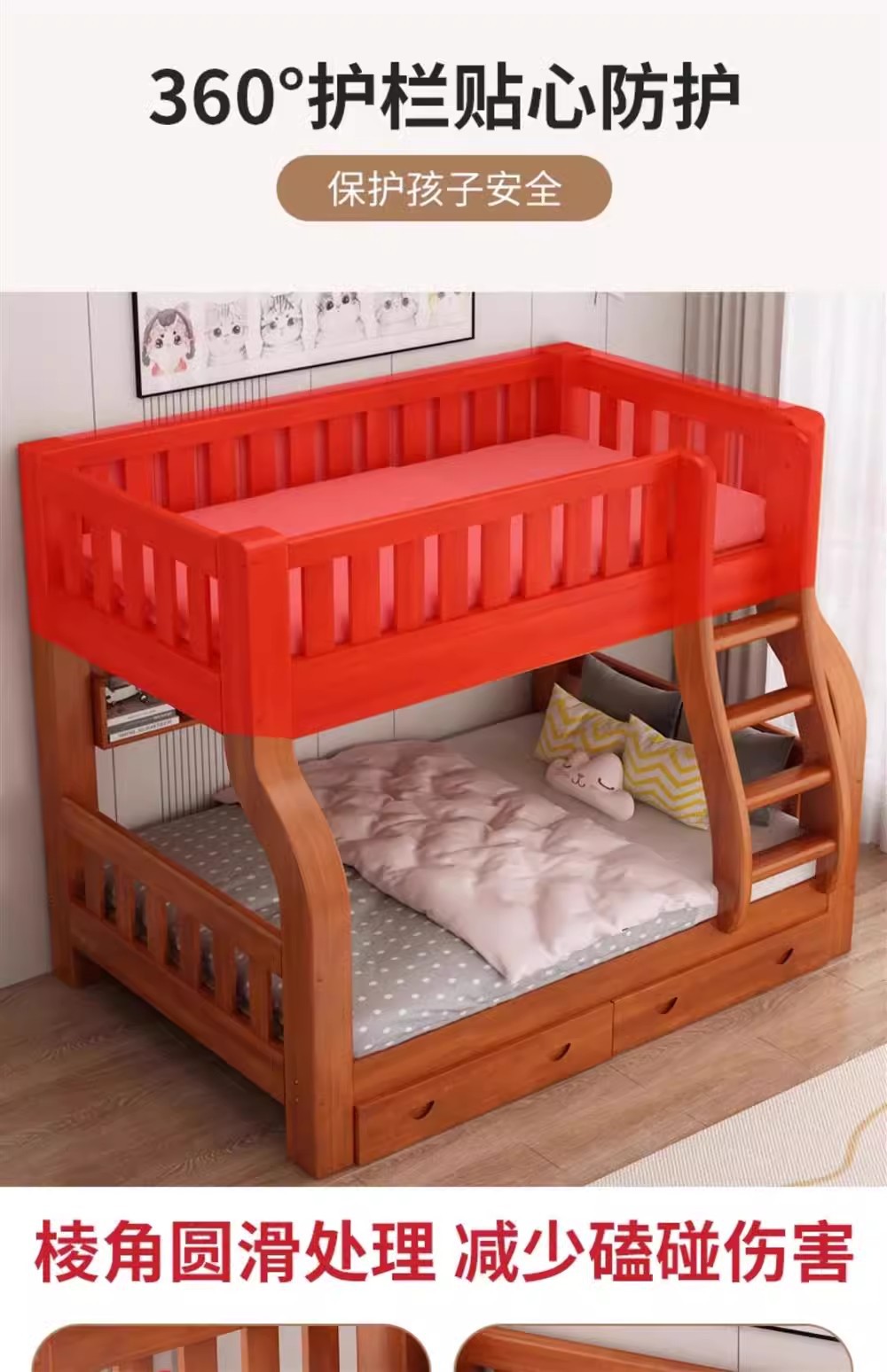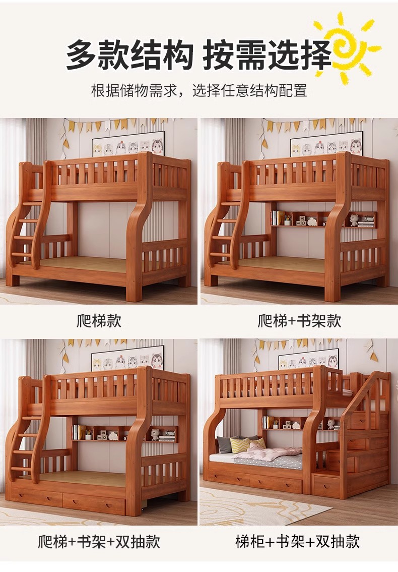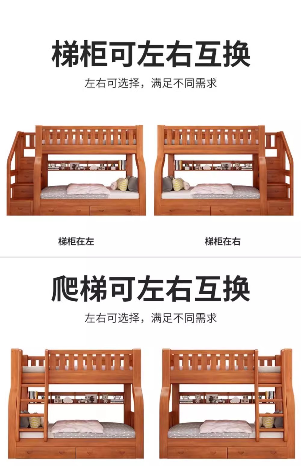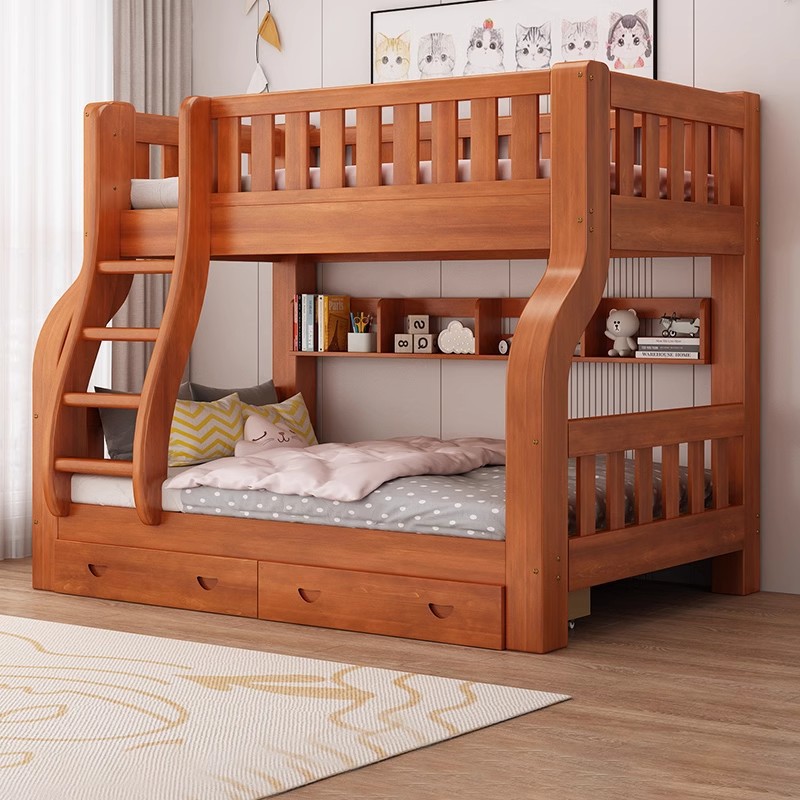 전체 단단한 나무 침대 성인 높고 낮은 2 층 침대 벙크 침대 더블 침대 침대 침대 침대 나무 침대 작은 가족 침대