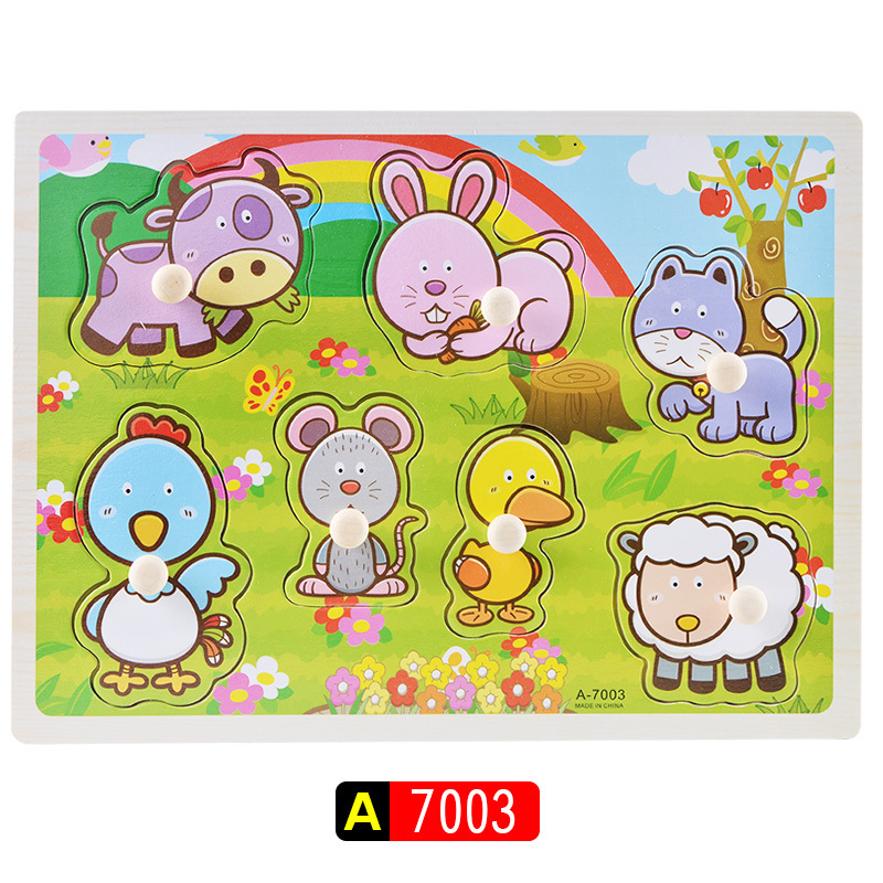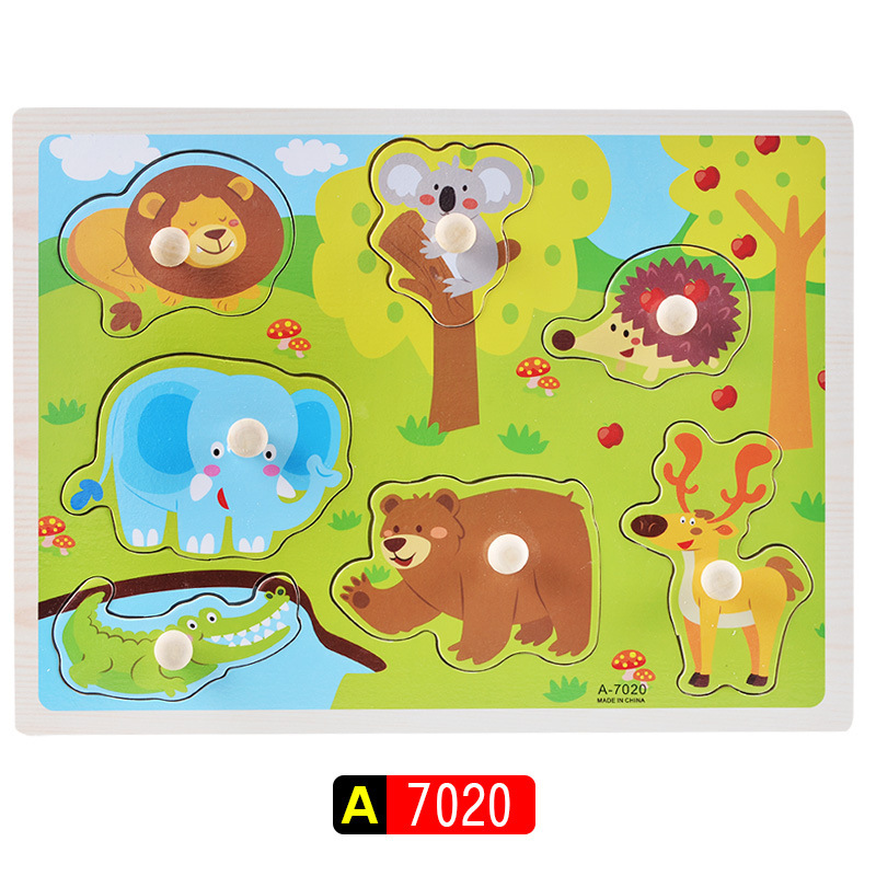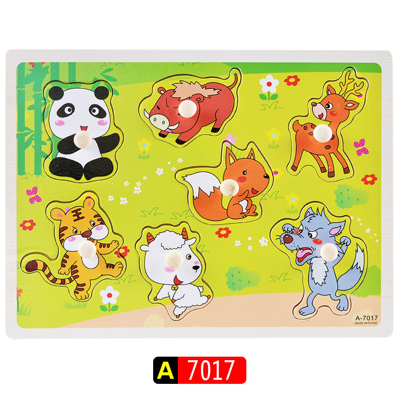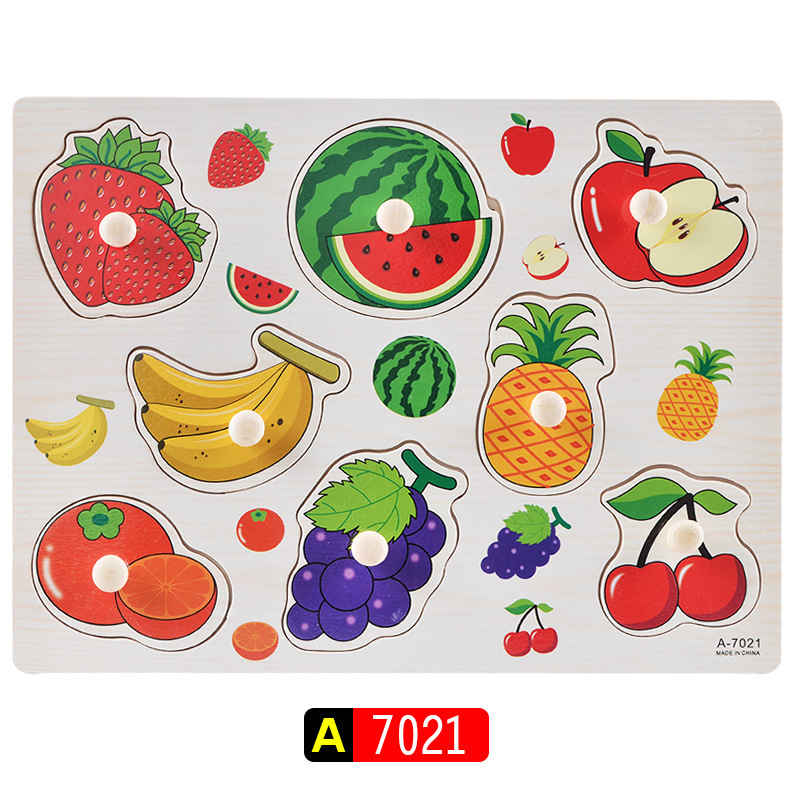 나무 도매 어린이 휴대용 보드 과일 동물 3 차원 퍼즐 빌딩 블록 인형 장난감 국경 계단스토어 가기
