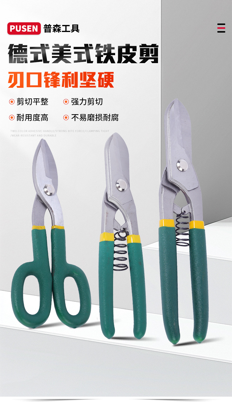 도매 독일식 노동절약형 철판 가위, 금속 산업용 미국식 스테인리스 이중 색상 플라스틱 손잡이 철판 가위스토어 가기