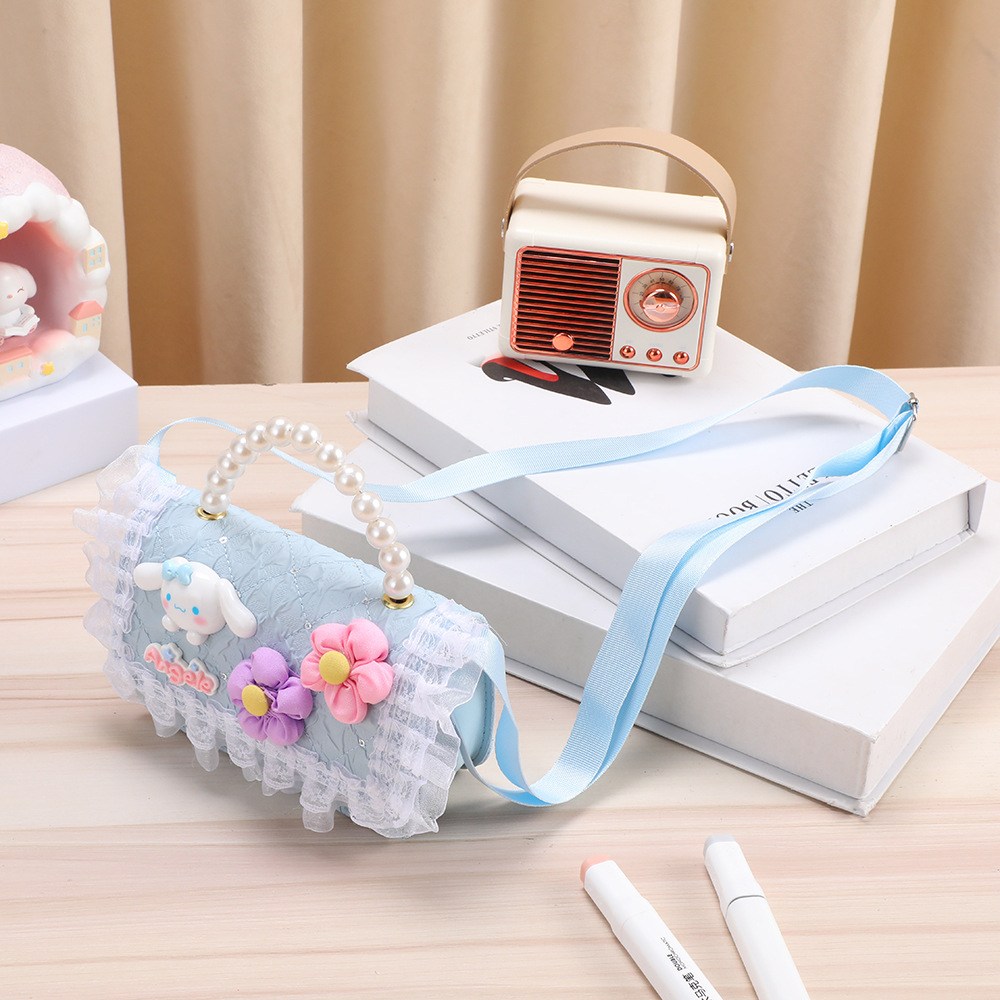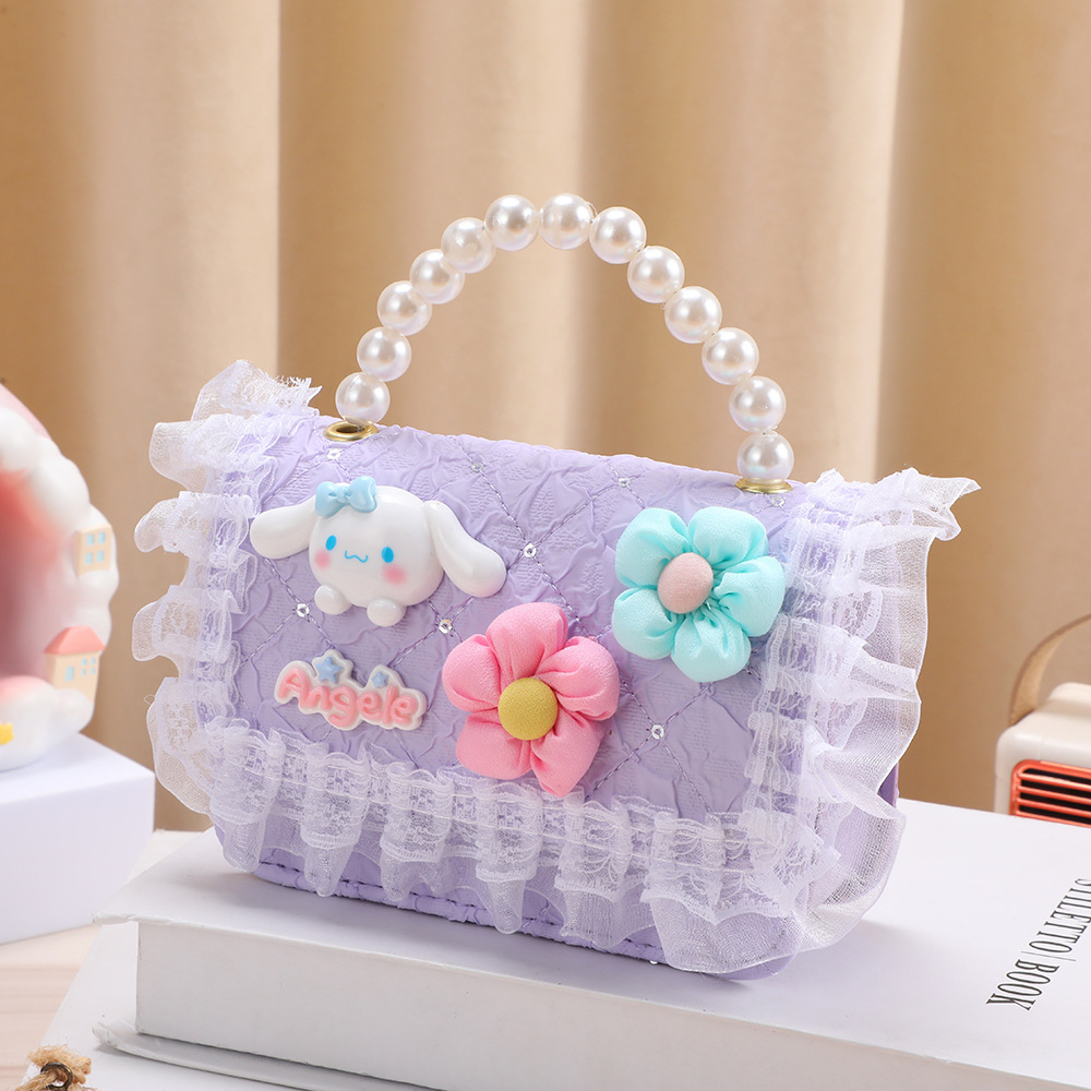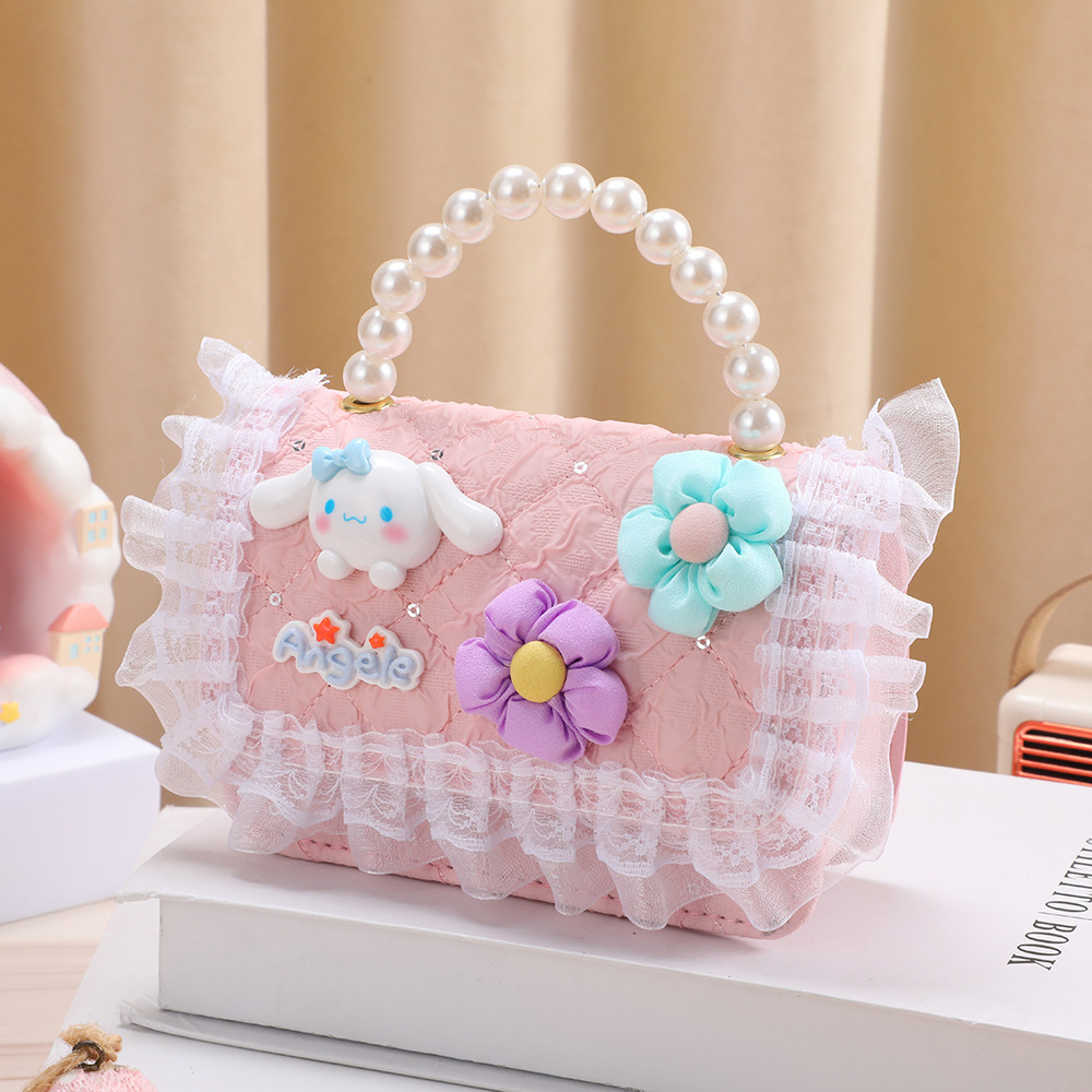 어린이 동전 지갑, 귀엽고 귀여운 공주 가방, 작은 향기 스타일 휴대용 진주 큰 귀 개 수납 레이스스토어 가기