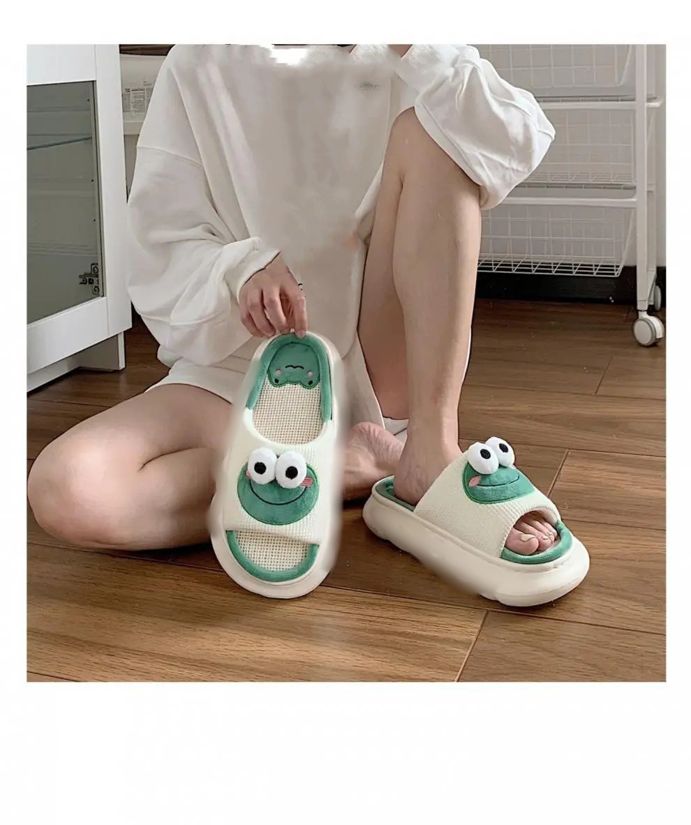 국경 새 집 면 리넨 슬리퍼 사계절 실내 귀여운 만화 개구리 소 리넨 슬리퍼스토어 가기