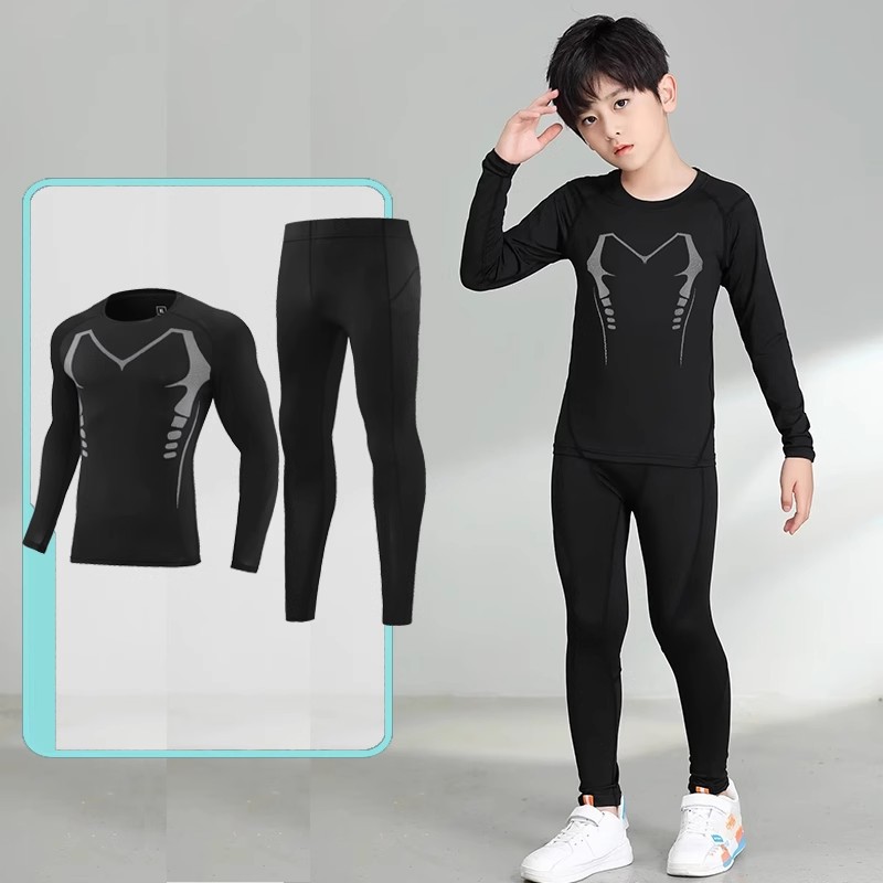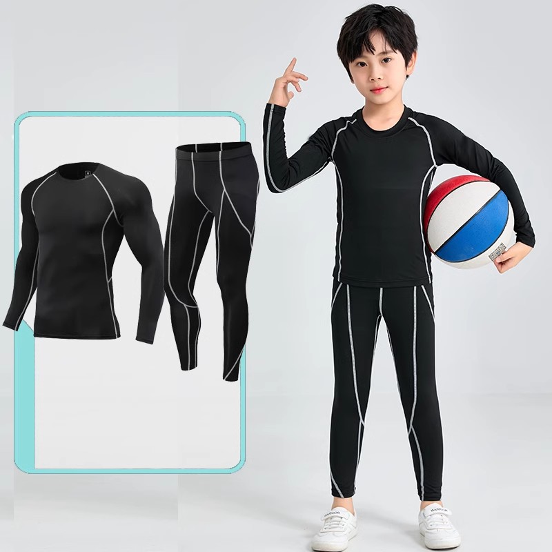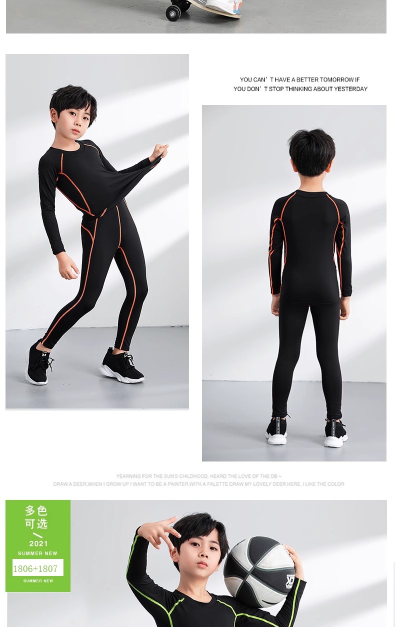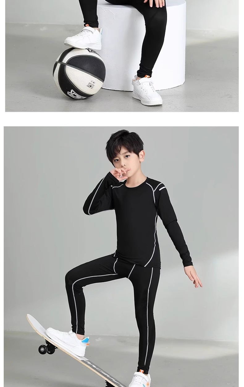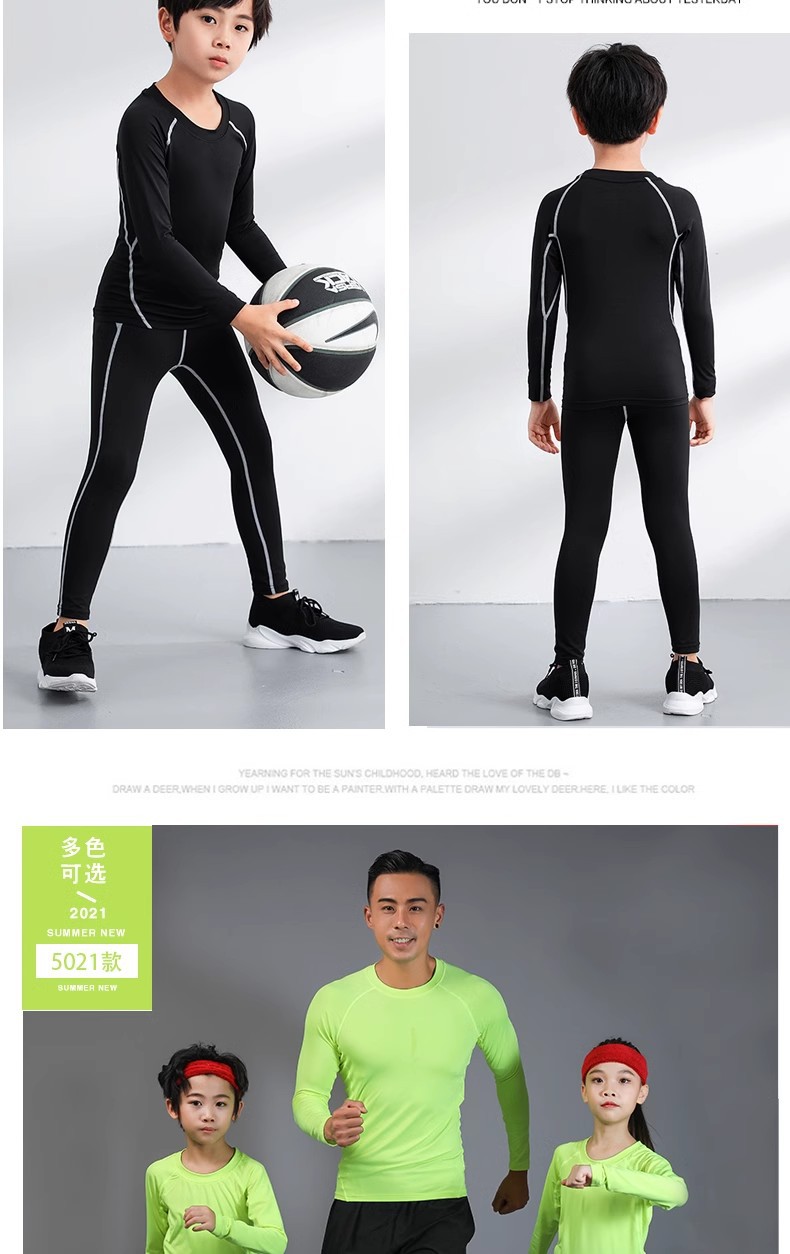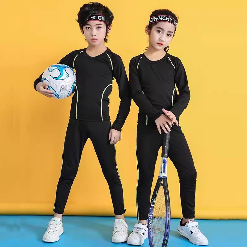 어린이 타이츠 훈련 옷 가을 겨울 레깅스 소년 농구 축구 스포츠 긴 소매 빠른 건조 옷 세트
