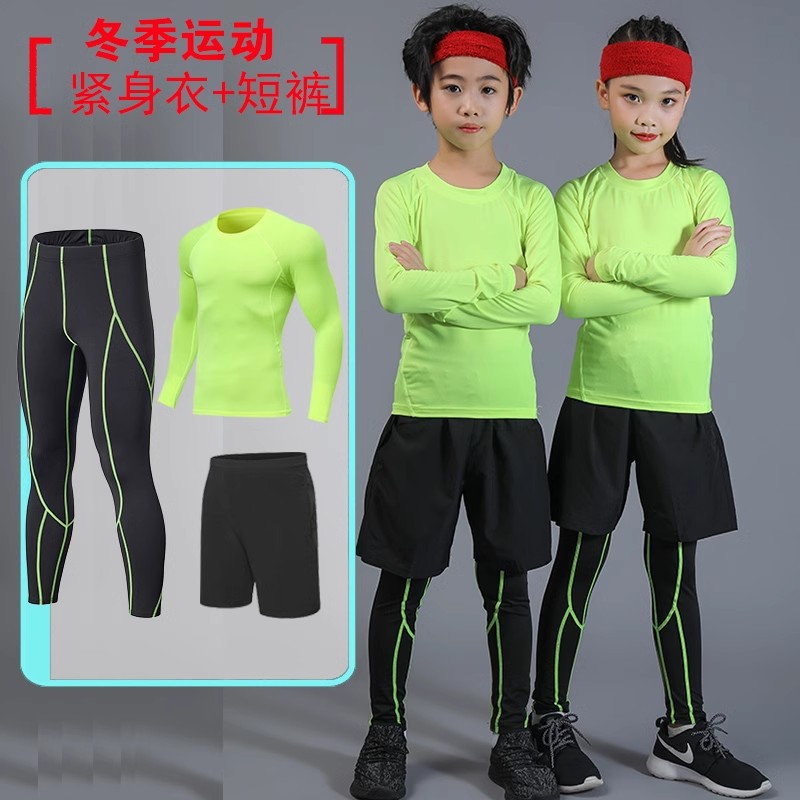 어린이 타이츠 훈련 옷 가을 겨울 레깅스 소년 농구 축구 스포츠 긴 소매 빠른 건조 옷 세트스토어 가기