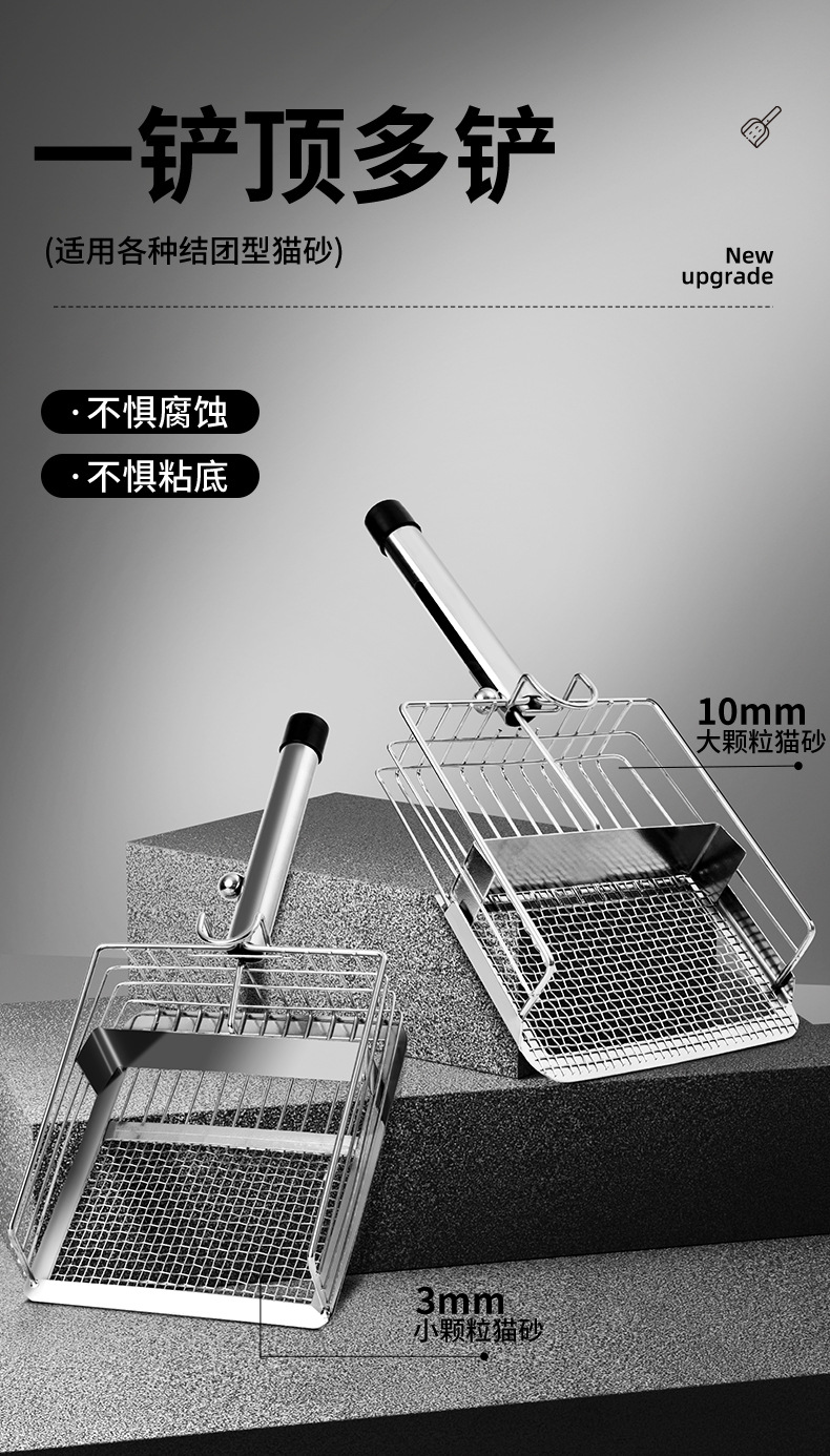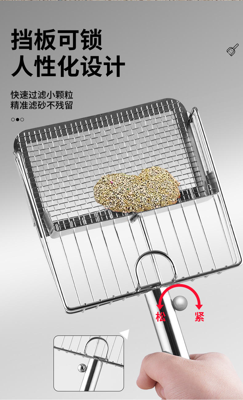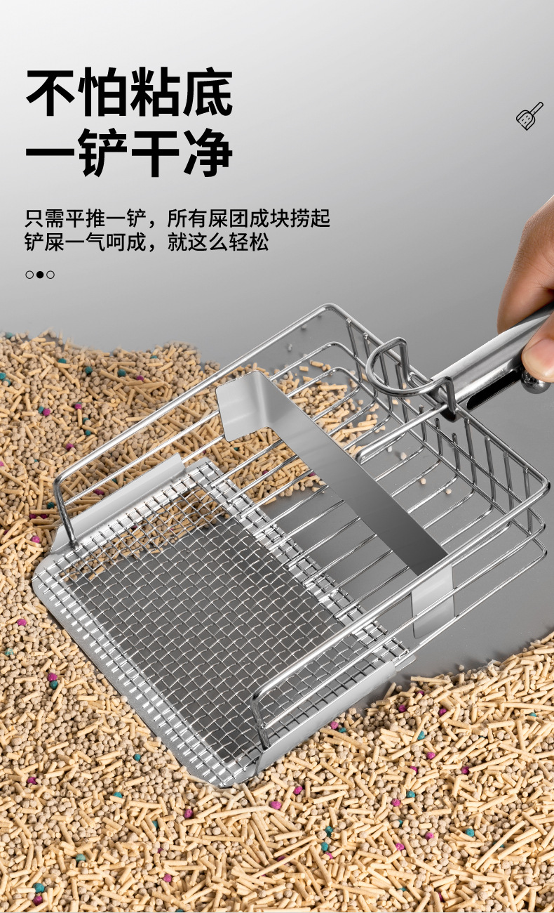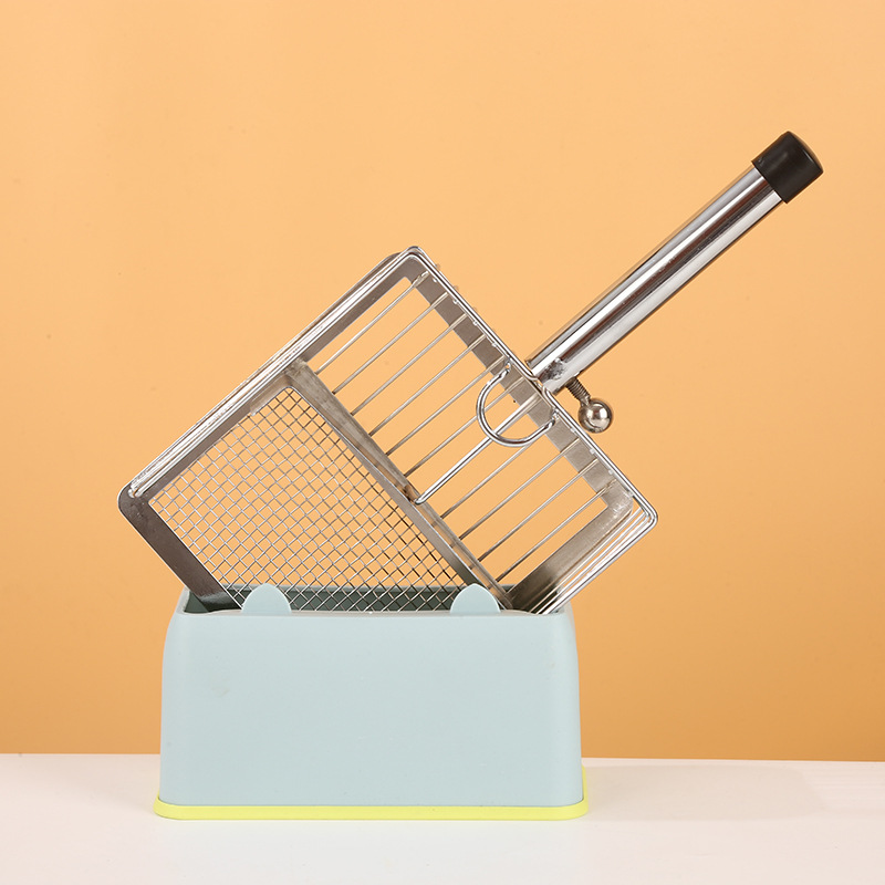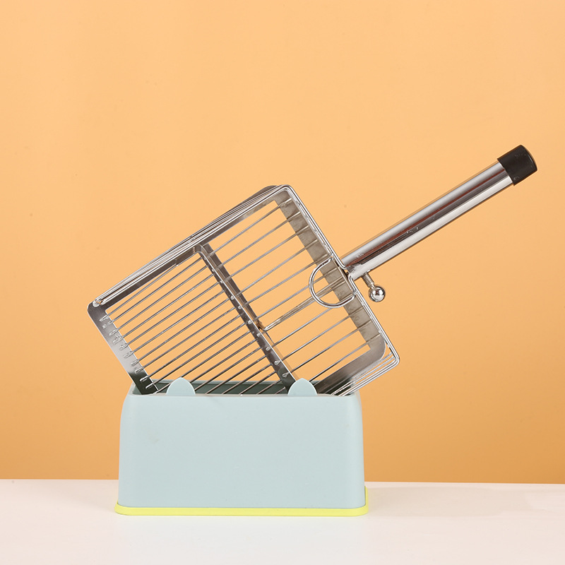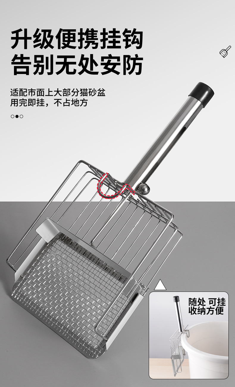 고양이 쓰레기 삽 금속 푸시-당겨 업그레이드 된 큰 크기 작은 구멍 고양이 삽 유물 고양이 삽 애완 동물 유물스토어 가기