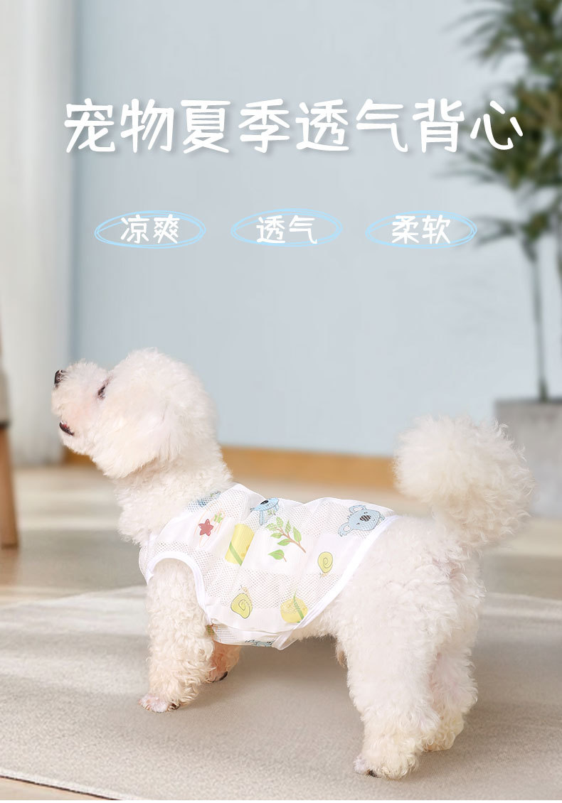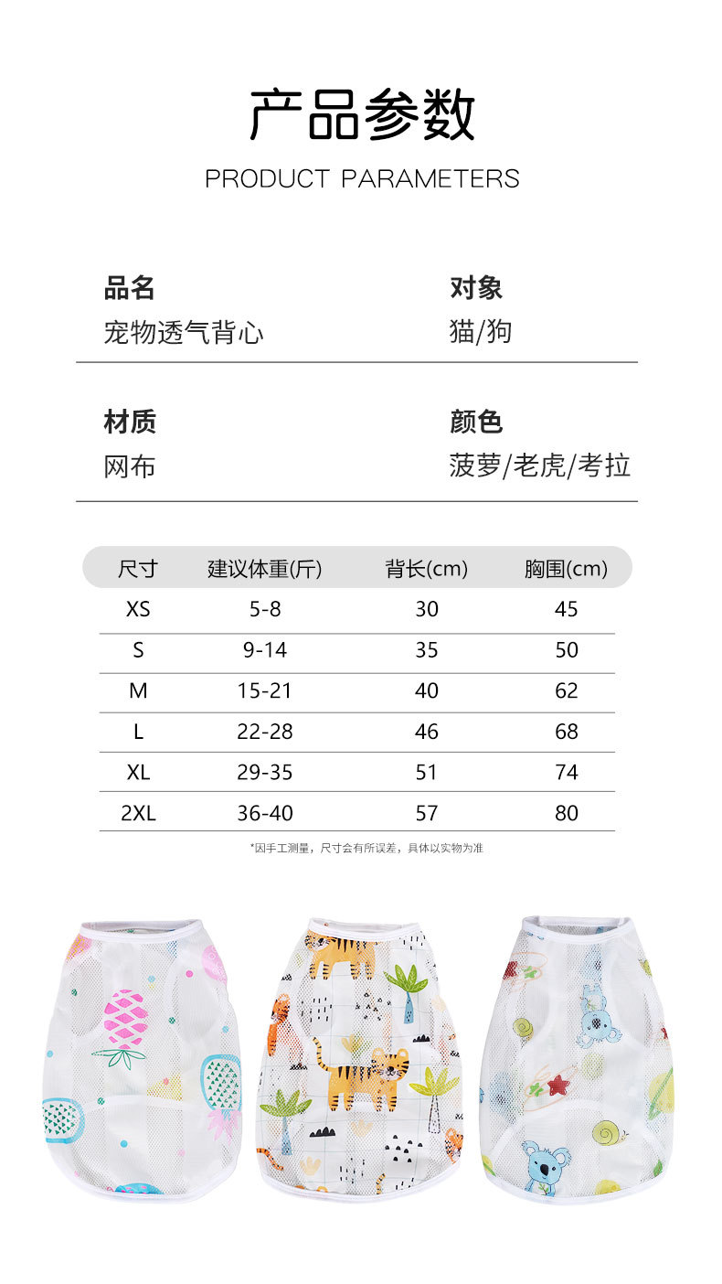 국경 새 애완 동물 여름 통기성 조끼 쿨 소프트 메쉬 옷 선 스크린 개 의류 재고스토어 가기