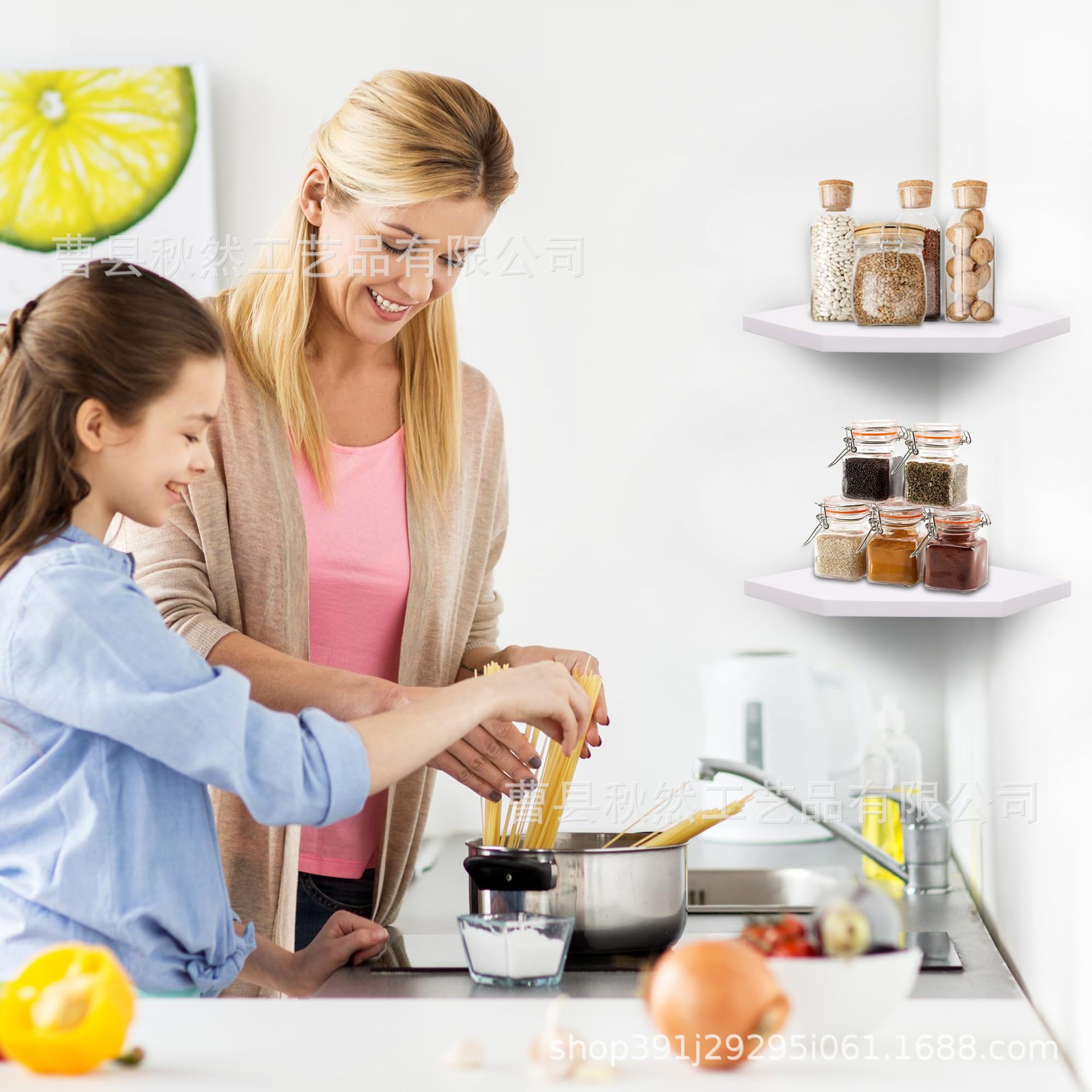 나무 코너 선반 삼각형 나무 벽 코너 선반 실내 벽걸이형 수납 선반 나무 화분 수납 선반스토어 가기