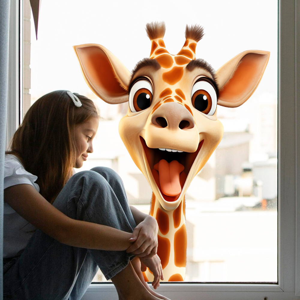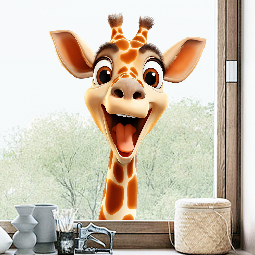 Yiyao JD3402 새로운 재미있는 기린 유리 스티커 쇼핑몰 상점 정전기 외관 장식 방수