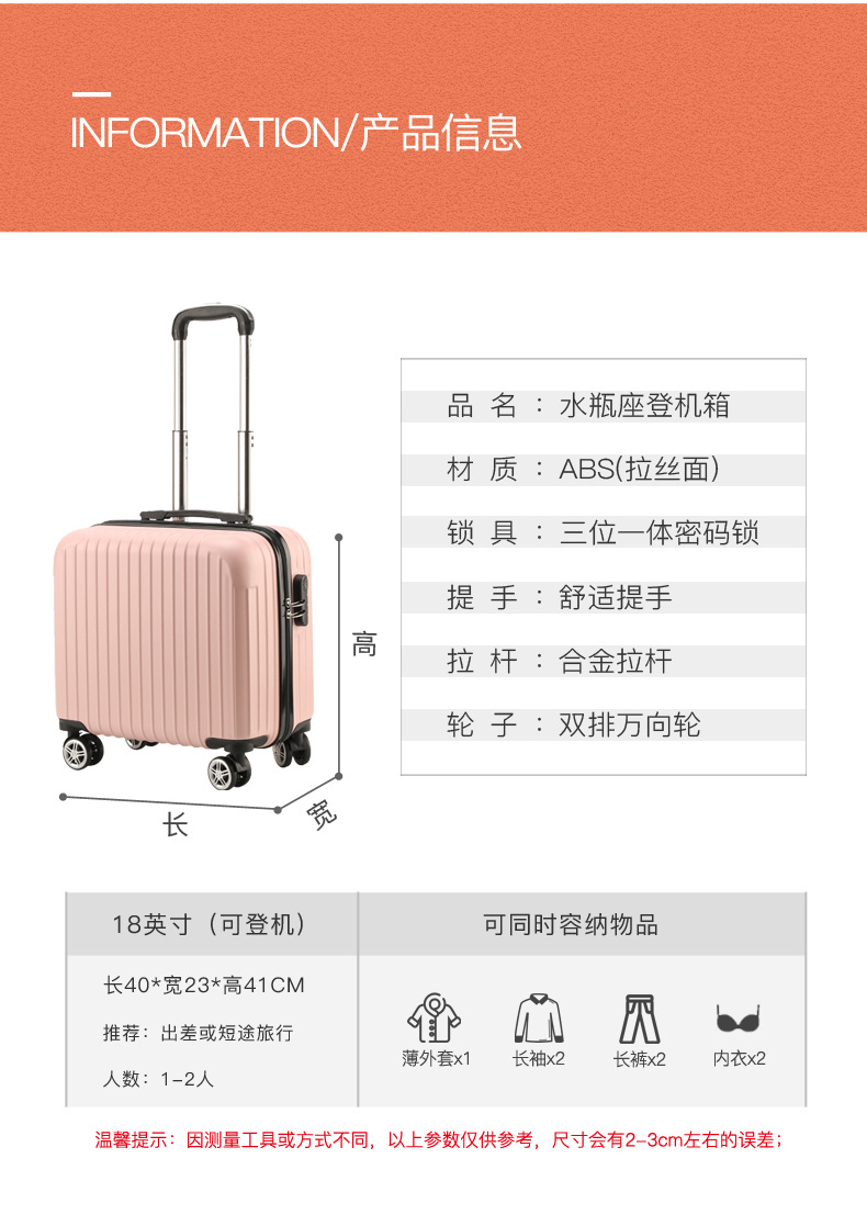 한국 미니 탑승 상자 18 인치 소형 수하물 케이스 여성 유니버설 휠 트롤리 케이스 경량 소형 가방 암호 상자