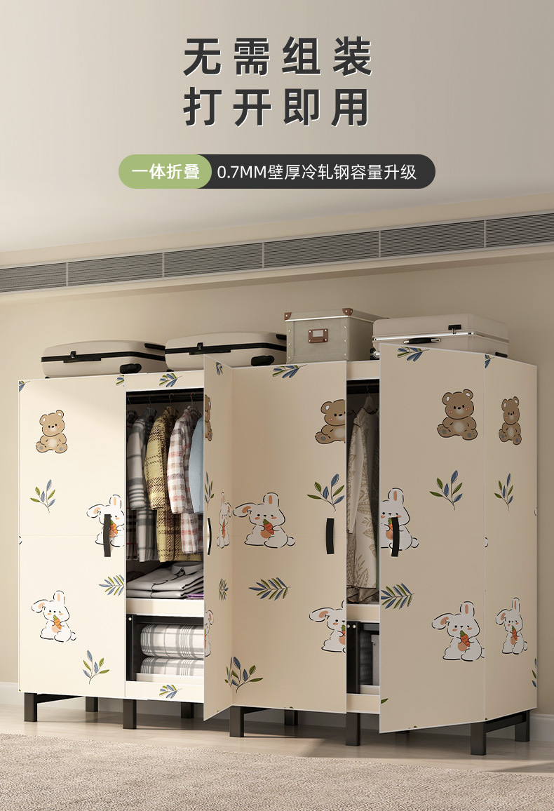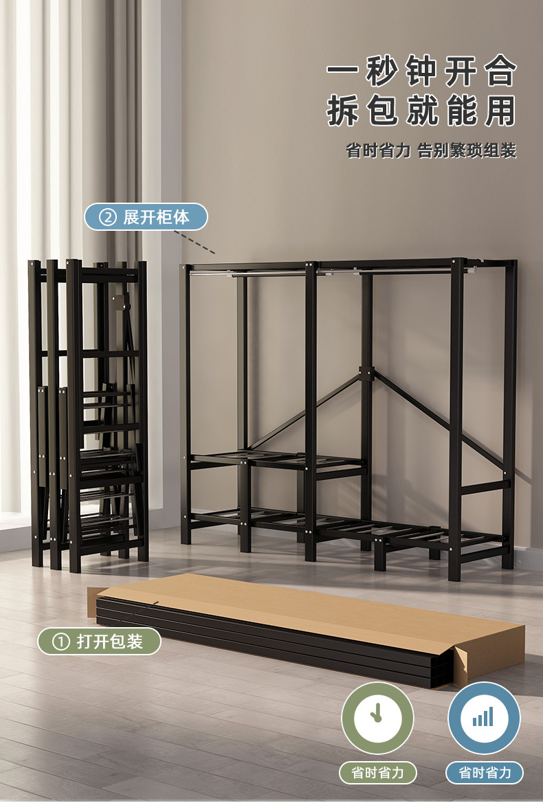 접이식 설치-간단한 반대 옷장 침실 임대 방 강하고 튼튼한 조립 두꺼운 풀 스틸 프레임
