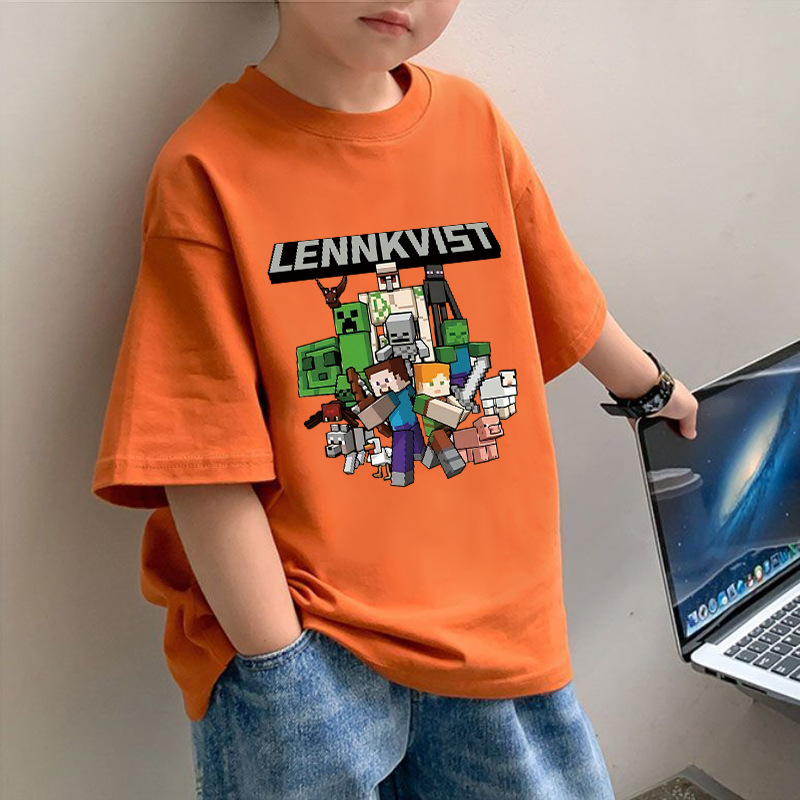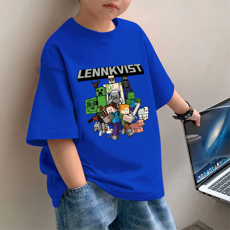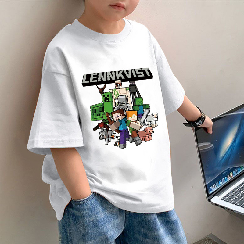 코튼 뉴 보이즈 반팔 티셔츠 여름 내 세계 인쇄 어린이 느슨한 트렌디 루즈 탑 큰 아이들