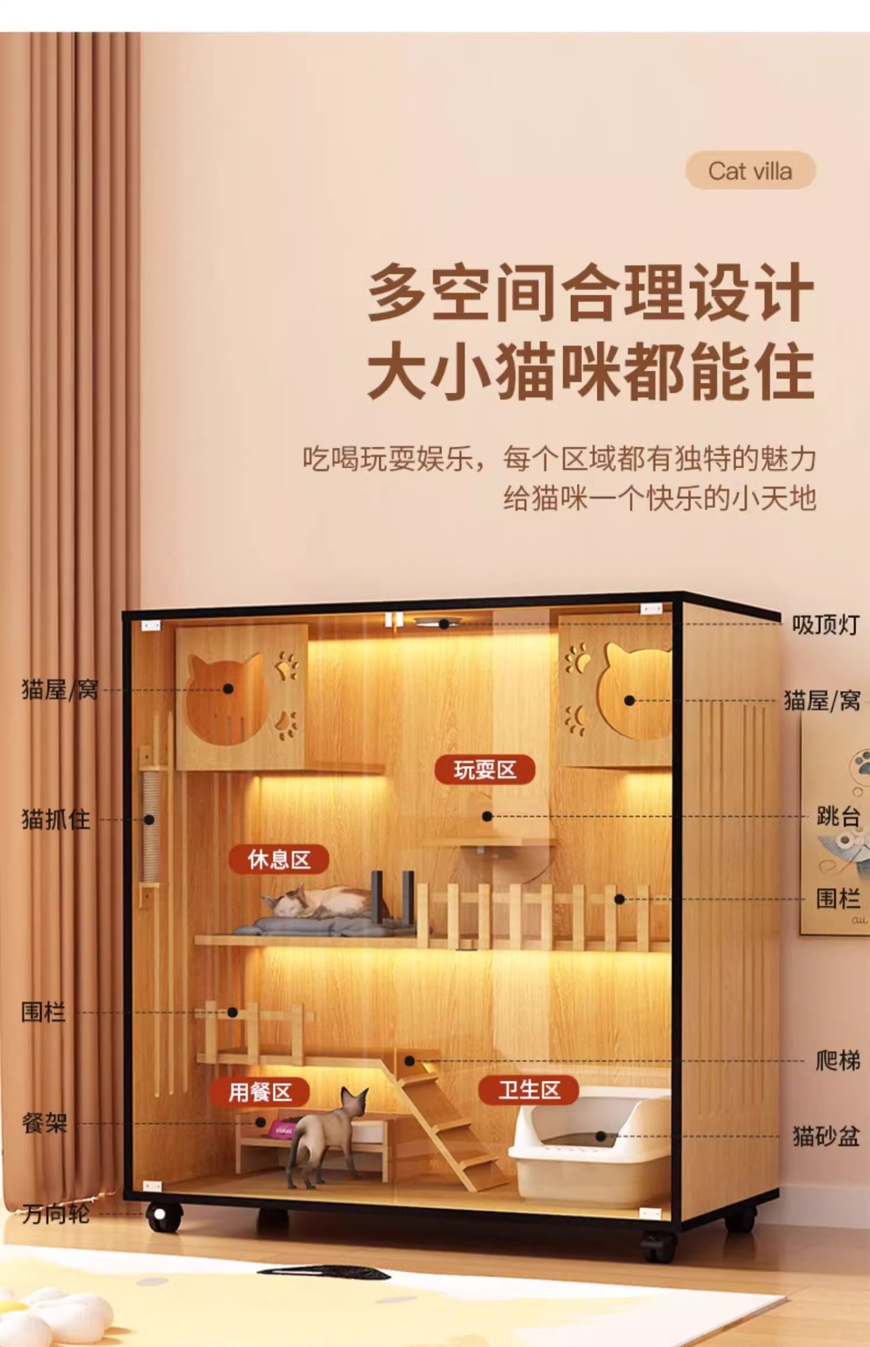 가정용 고양이 빌라 고양이 럭셔리 실내 고양이 둥지 고양이 집 슈퍼 대형 무료 공간 고양이 집 단단한 나무 고양이 집 고양이 캐비닛