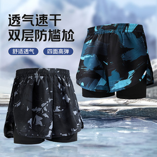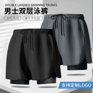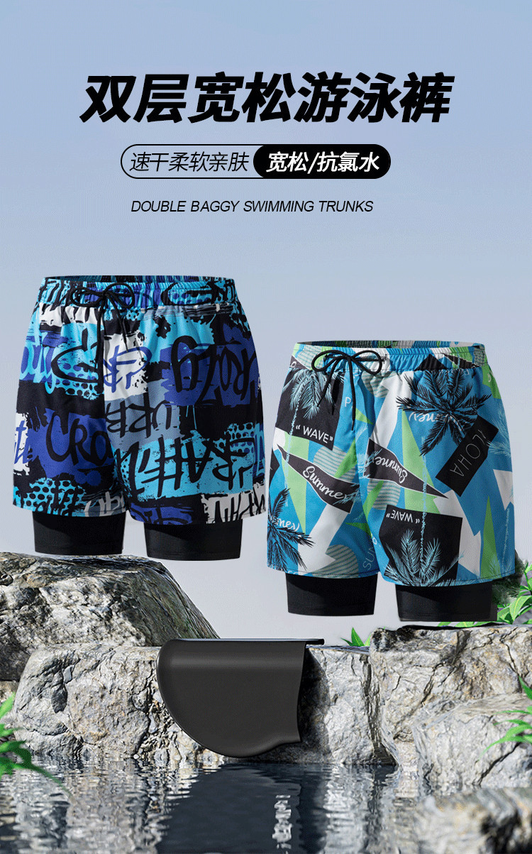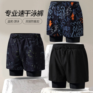 남성 수영복 성인용 새로운 더블 레이어 당황 방지 전문 속건성 세련된 느슨한 복서 고탄성 대형 비치 바지스토어 가기