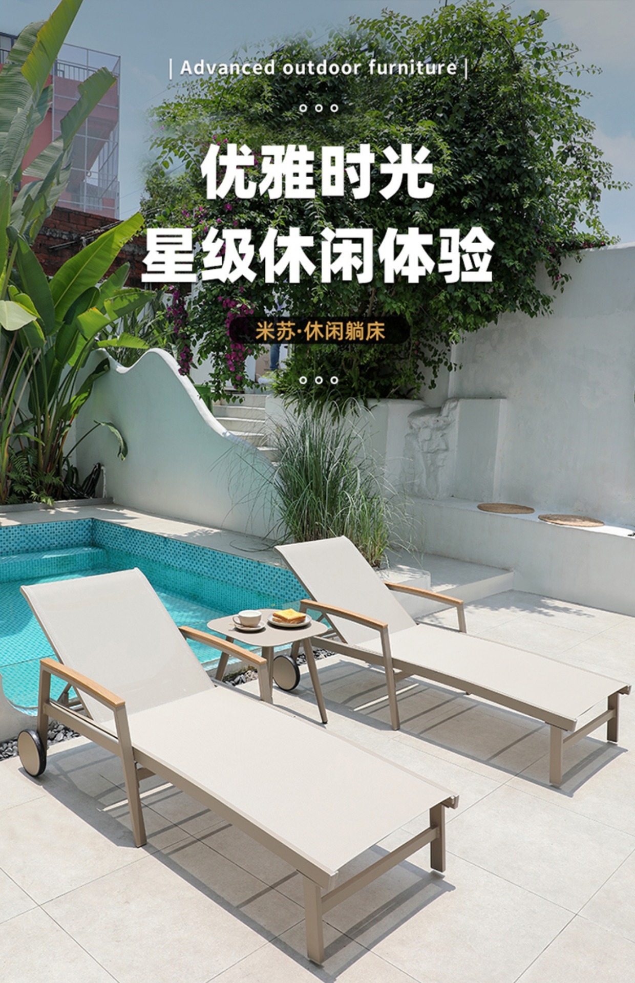 야외 거짓말 침대 레저 홈스테이 인터넷 유명 수영장 거짓말 침대 방수 선 스크린 야외 안뜰 야외 바퀴 비치 의자스토어 가기