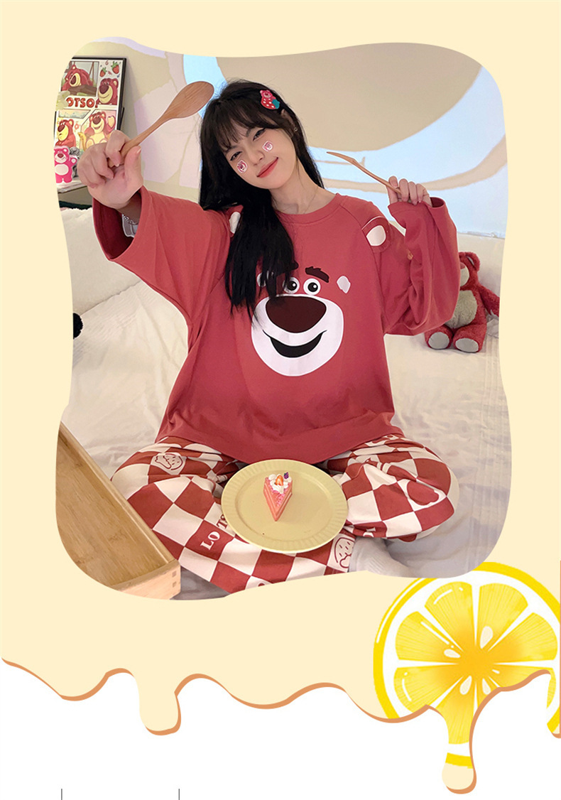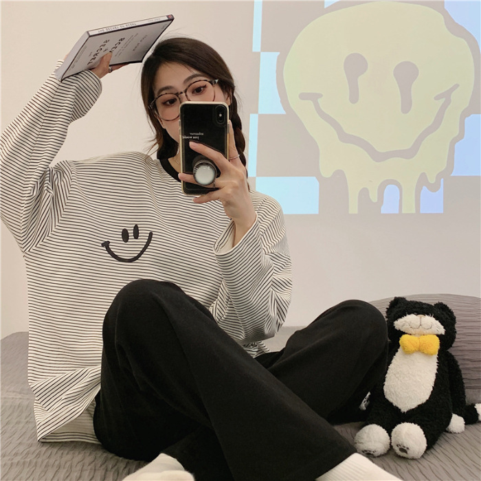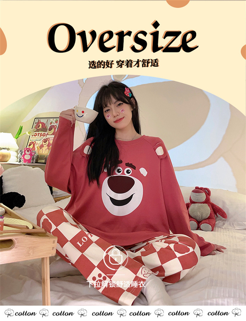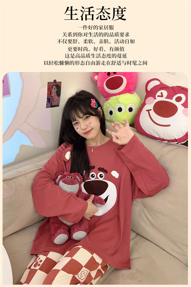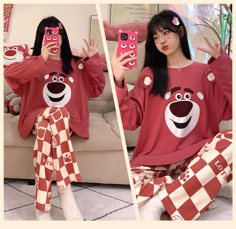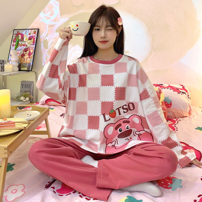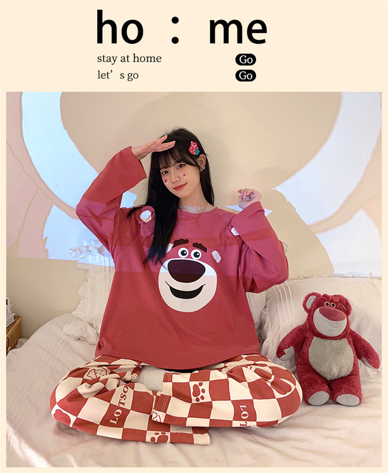 잠옷 여성의 봄과 가을 긴팔 바지 면 달콤한 귀여운 만화 Instagram 스타일 여성 홈 의류 세트 외부 착용 가능스토어 가기