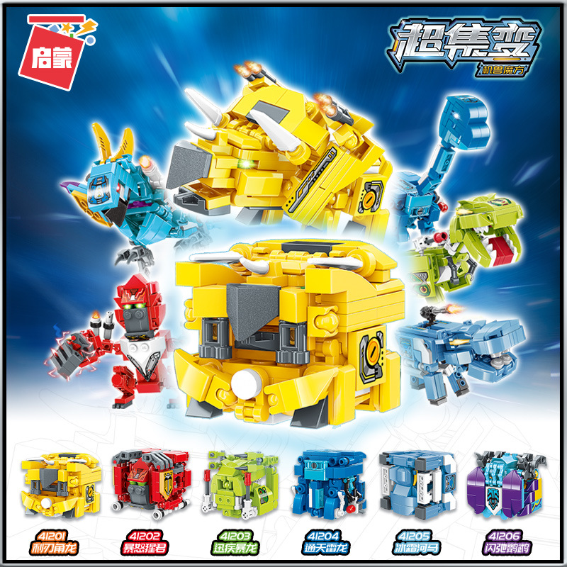 계몽주의 건물 블록 41201-06 기계 비스트 루빅스 큐브 변형 메카 보이 조립 장난감 퍼즐 변형 공룡 조립