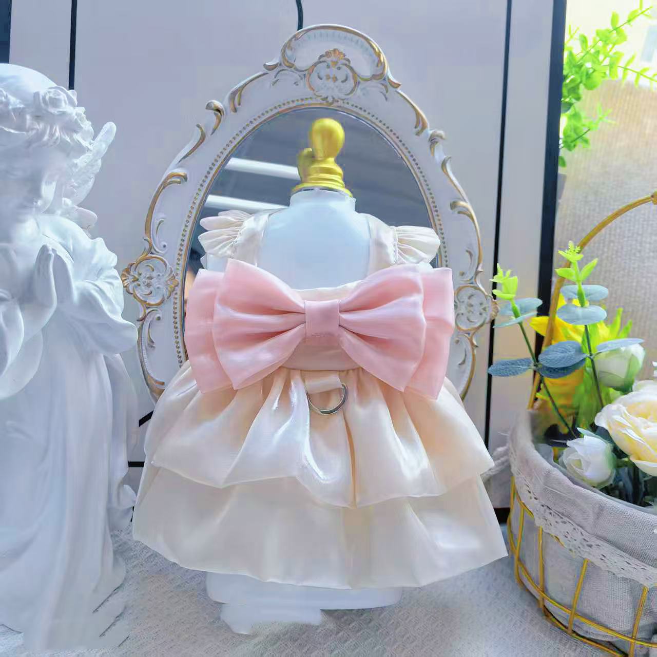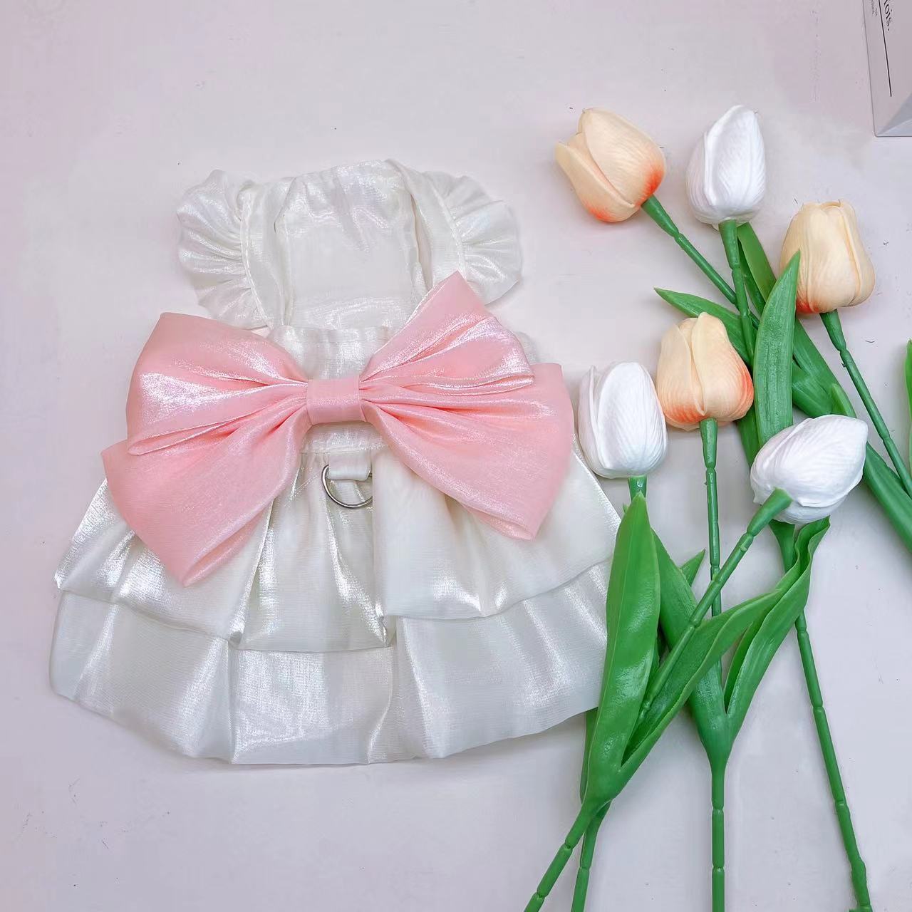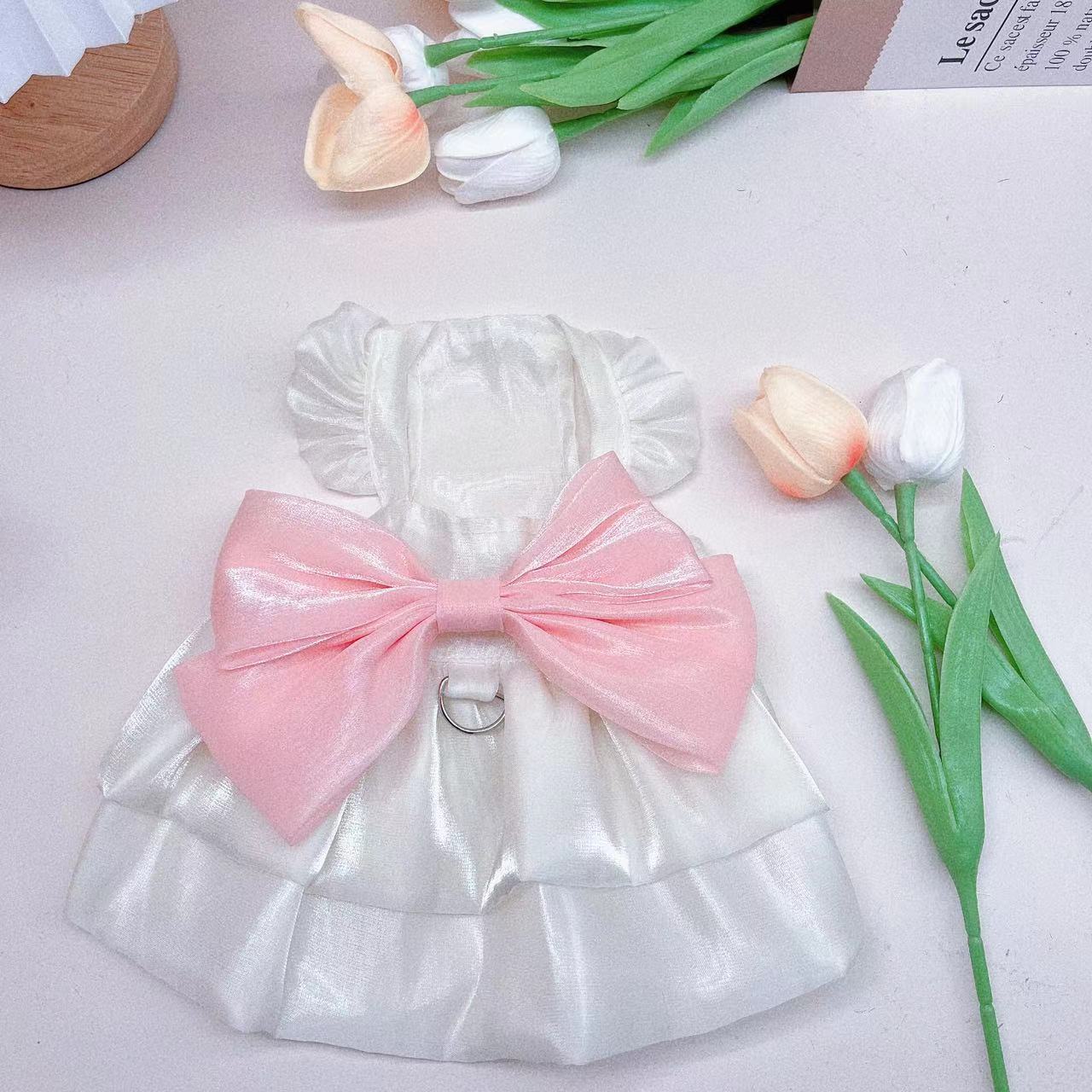 애완 동물 옷 봄과 여름 새로운 스트라이머 통기성 거즈 스커트 테디 베어 개 고양이 아웃 견인 얇은 자외선 차단제