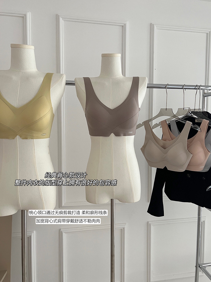 가벼운 플라스틱 리프팅 속옷 여성용 원피스 풀 고정 컵 비 러닝 컵 와이드 숄더 스트랩 조끼 타입 원활한 텍스트 브래지어 엔티티