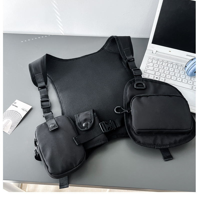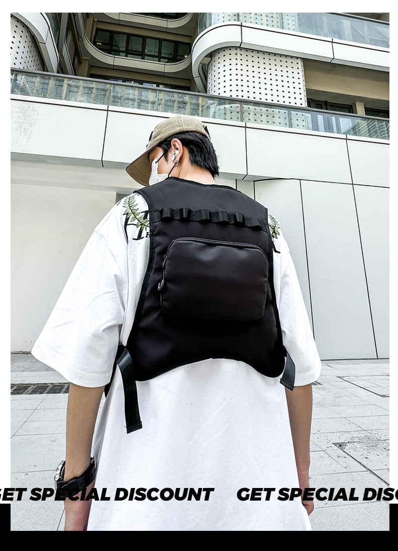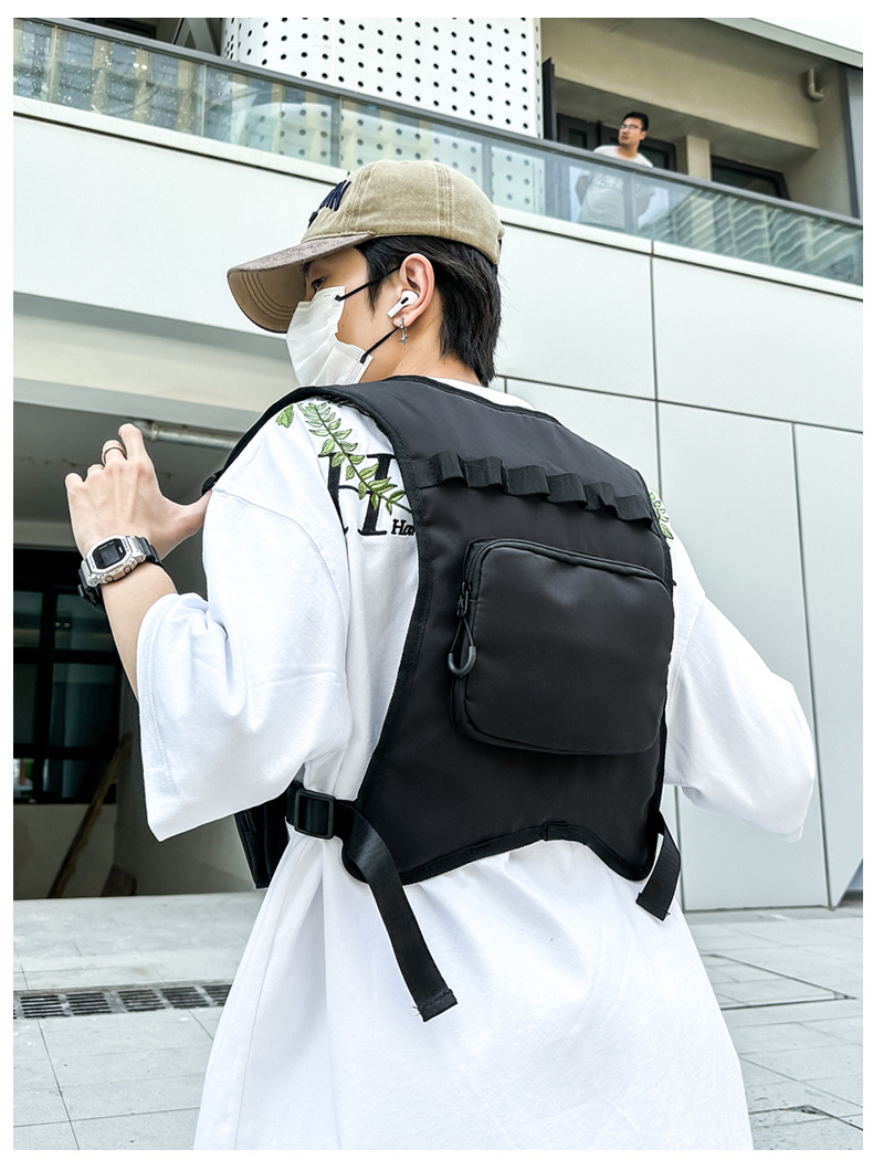 도구 기능 바람 멀티 포켓 조끼 백팩 2024 새로운 어두운 바람 트렌드 시원한 착용 가능한 배낭 가슴 가방