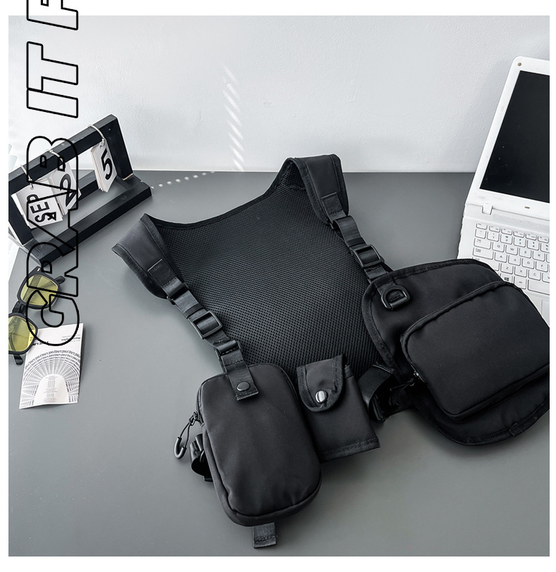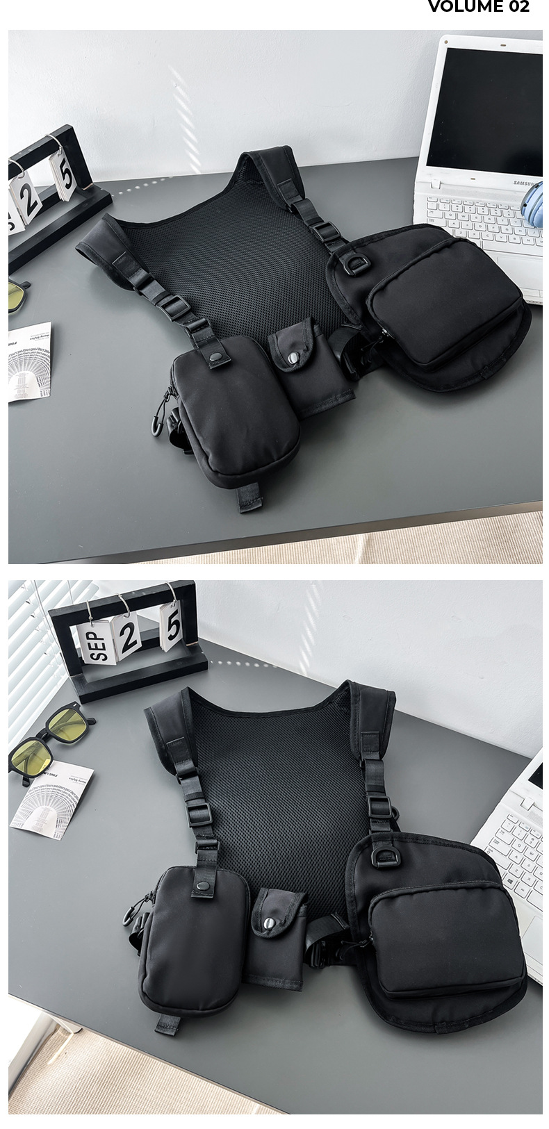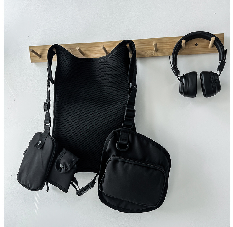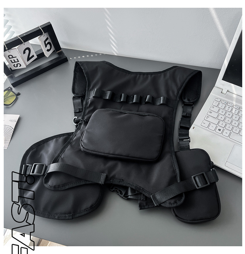 도구 기능 바람 멀티 포켓 조끼 백팩 2024 새로운 어두운 바람 트렌드 시원한 착용 가능한 배낭 가슴 가방스토어 가기