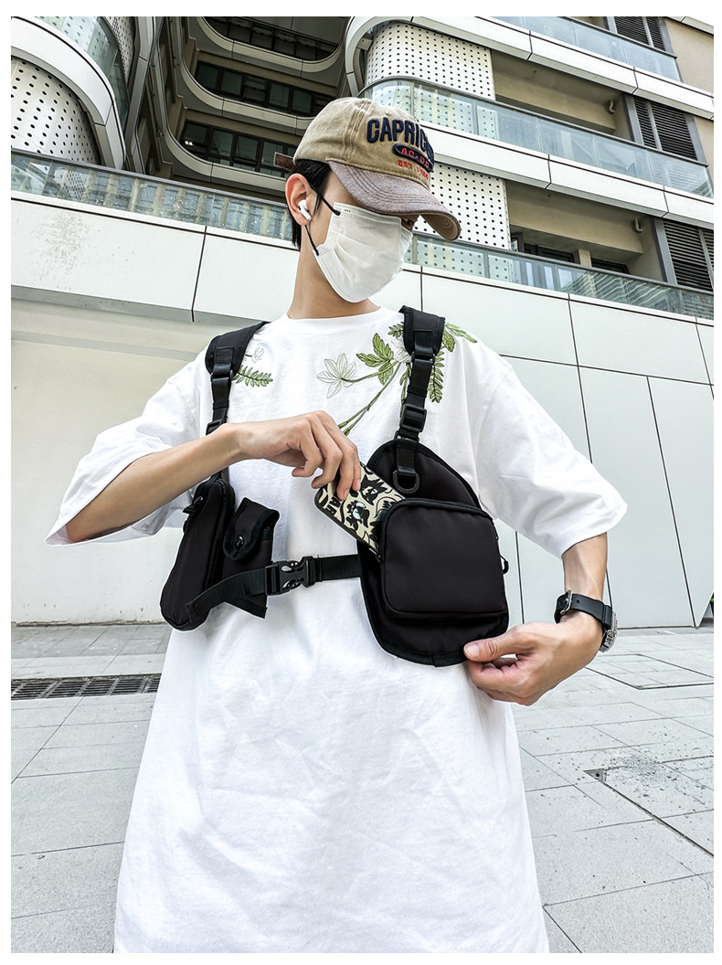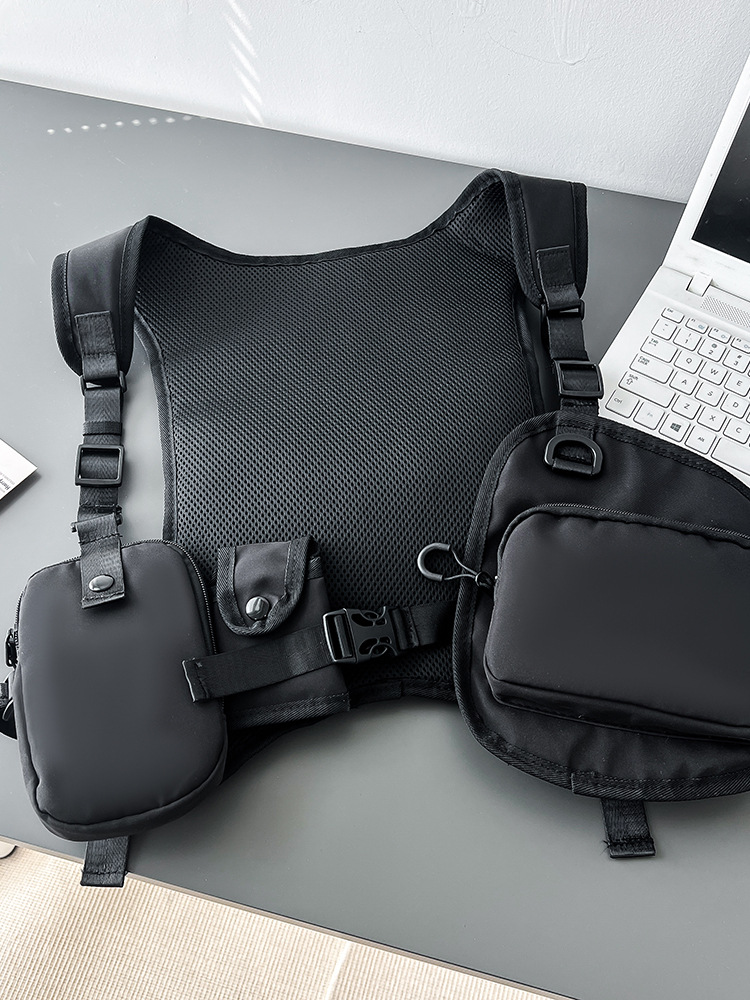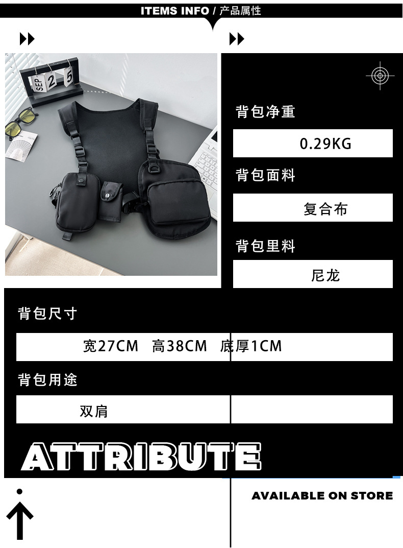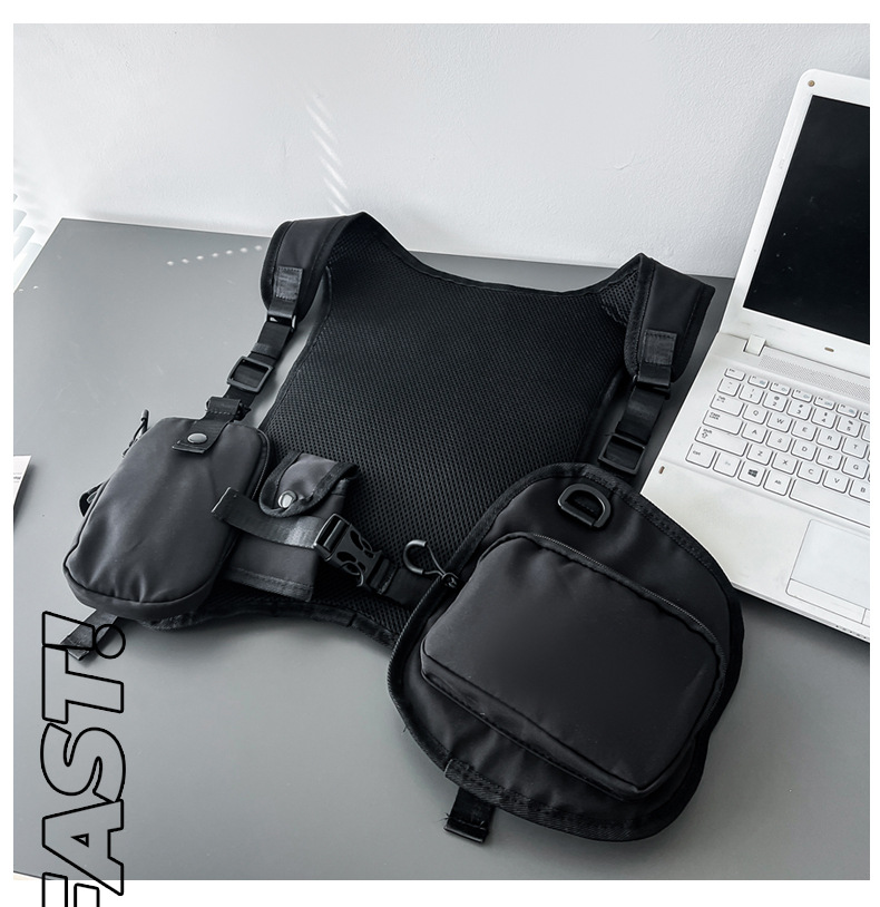 도구 기능 바람 멀티 포켓 조끼 백팩 2024 새로운 어두운 바람 트렌드 시원한 착용 가능한 배낭 가슴 가방스토어 가기