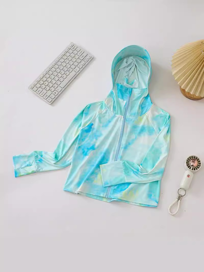 소녀 여름 태양 보호 의류 2024 새로운 스타일 큰 소년 소녀 아이스 실크 여름 의류 피부 옷 통기성 차양 에어컨 셔츠스토어 가기
