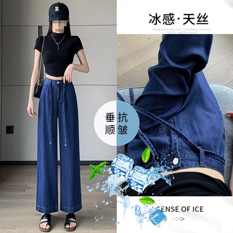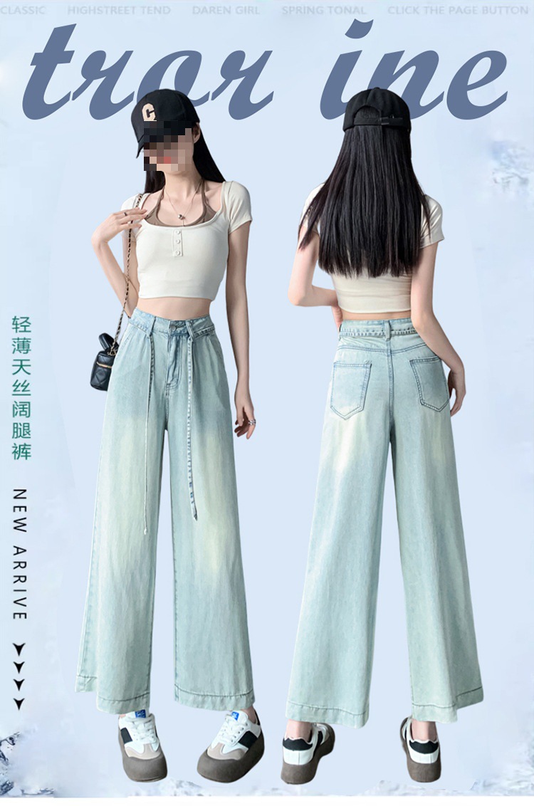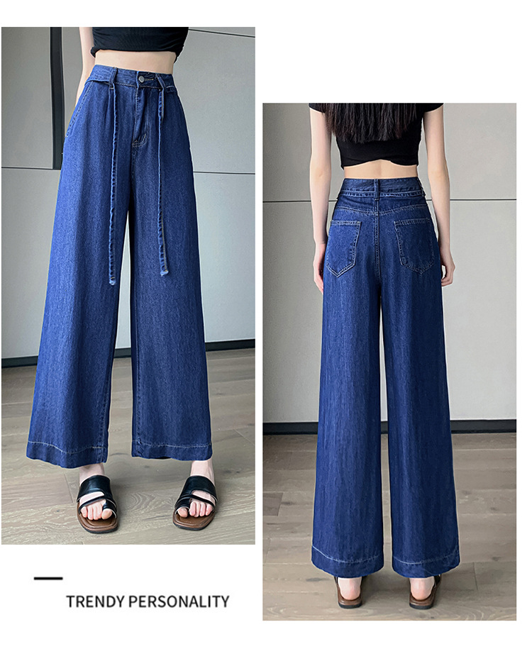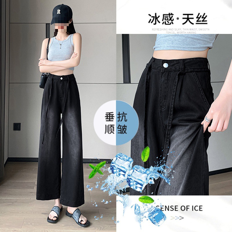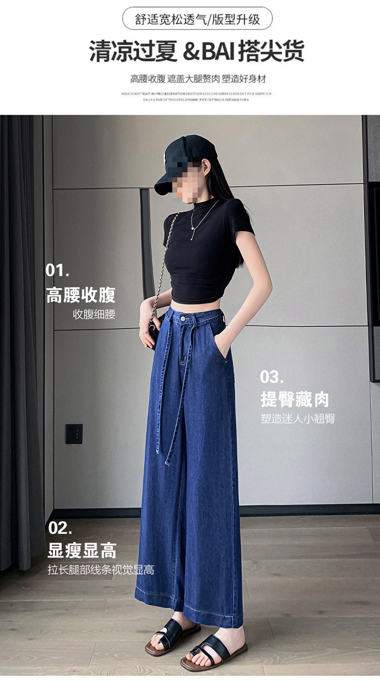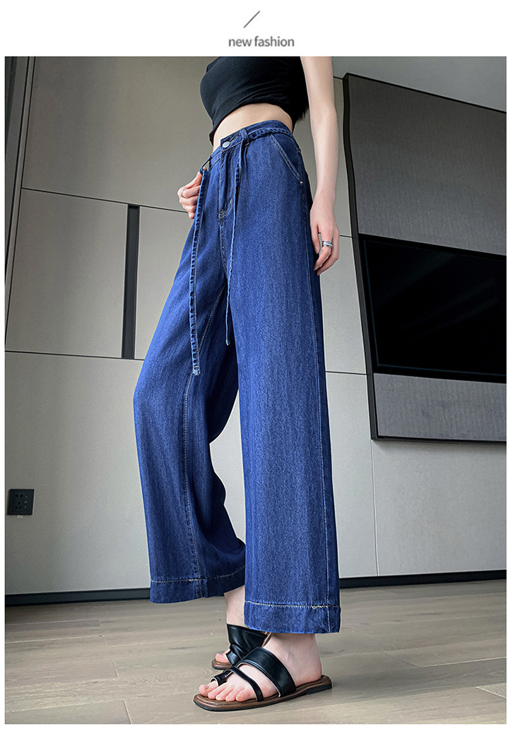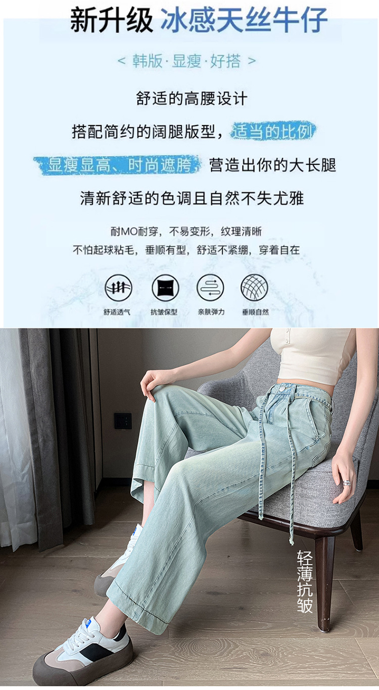 슈퍼 소프트 텐셀 수직 느슨한 와이드 레그 할머니 바지 그리기 Lyocell 쿨 간단한 9 포인트 작은 데님 여성스토어 가기