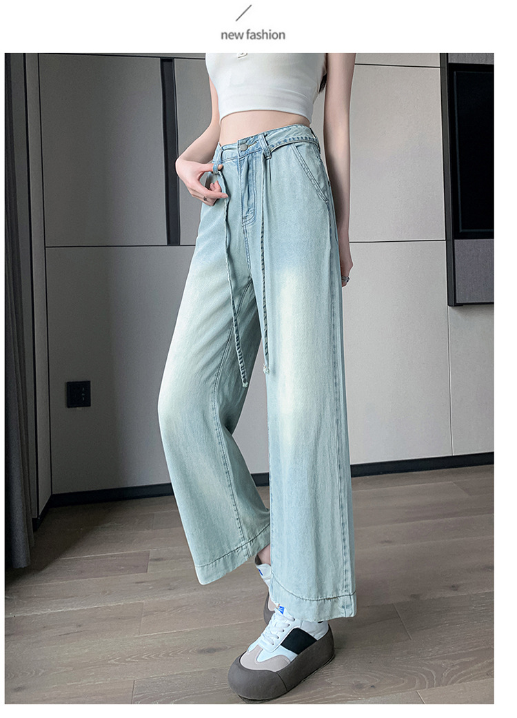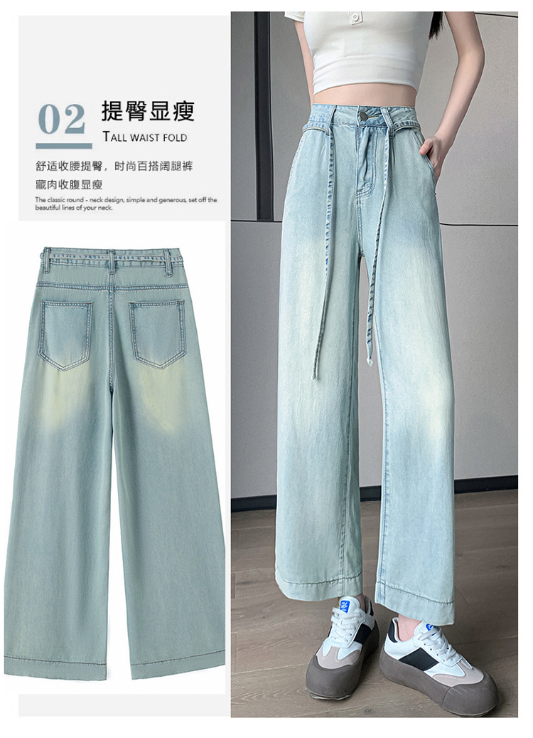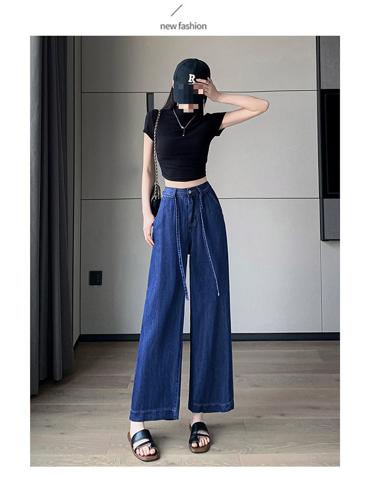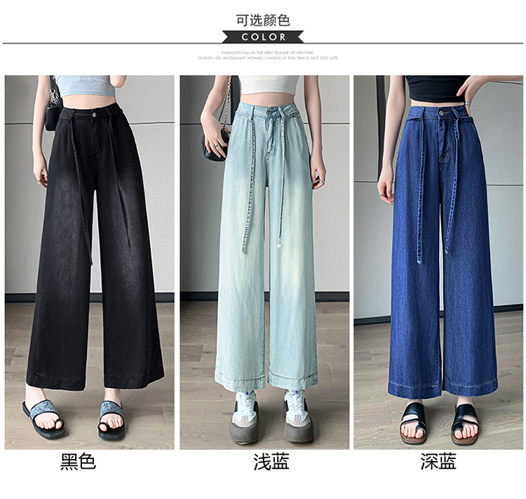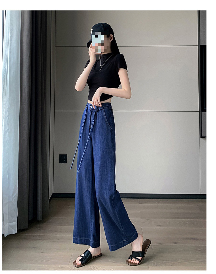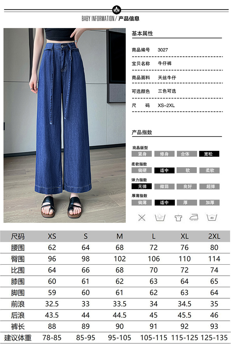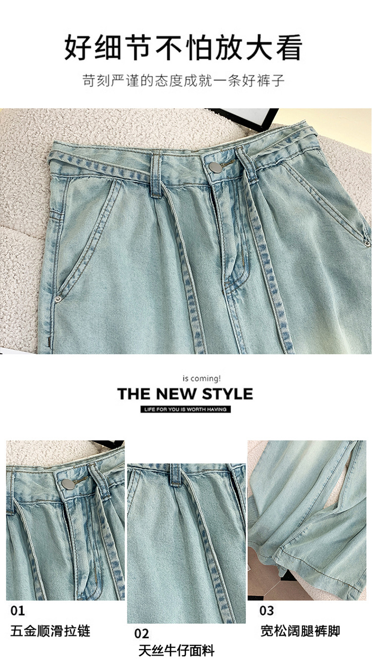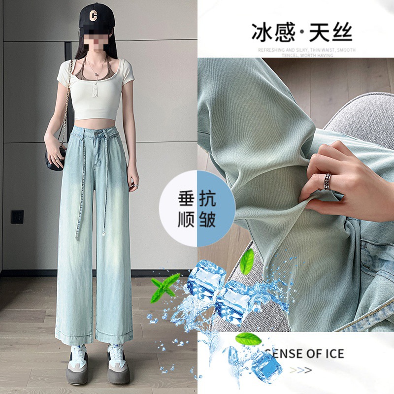 슈퍼 소프트 텐셀 수직 느슨한 와이드 레그 할머니 바지 그리기 Lyocell 쿨 간단한 9 포인트 작은 데님 여성스토어 가기