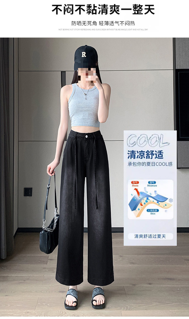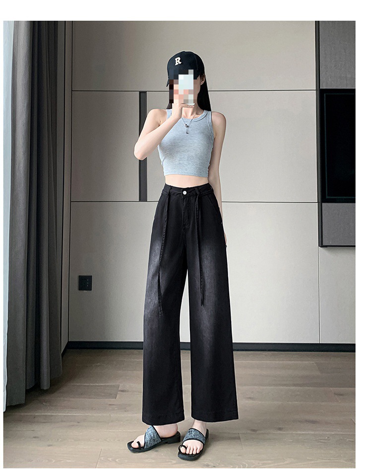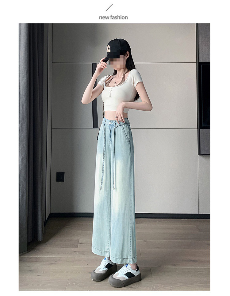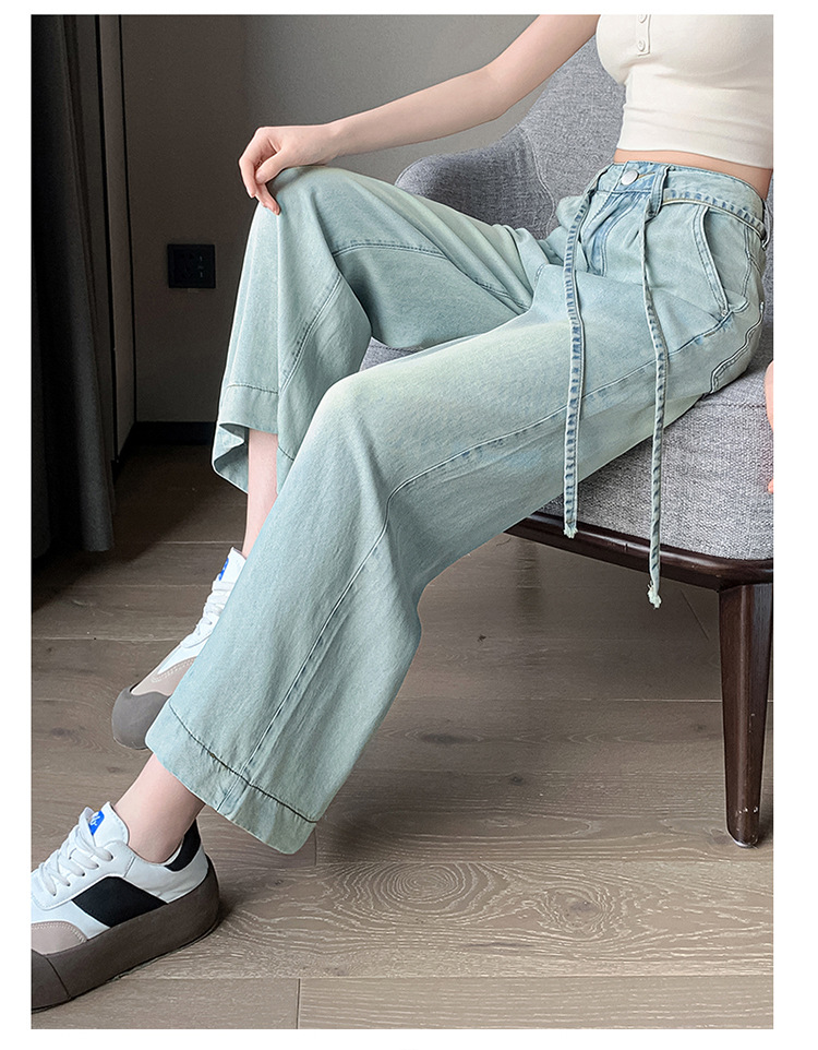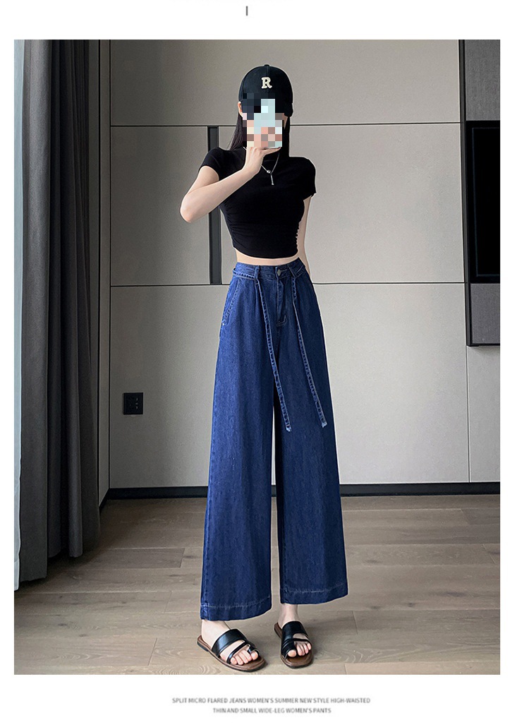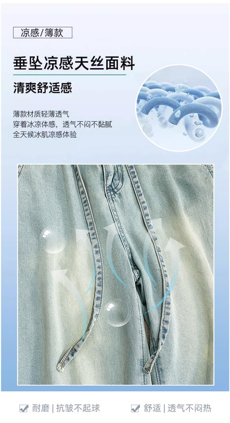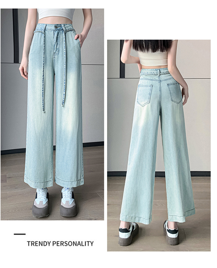 슈퍼 소프트 텐셀 수직 느슨한 와이드 레그 할머니 바지 그리기 Lyocell 쿨 간단한 9 포인트 작은 데님 여성스토어 가기