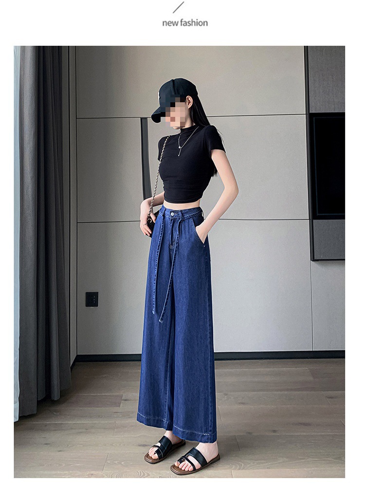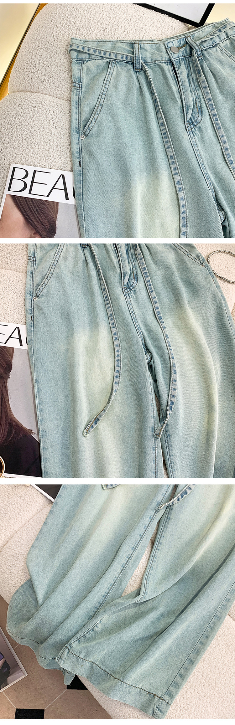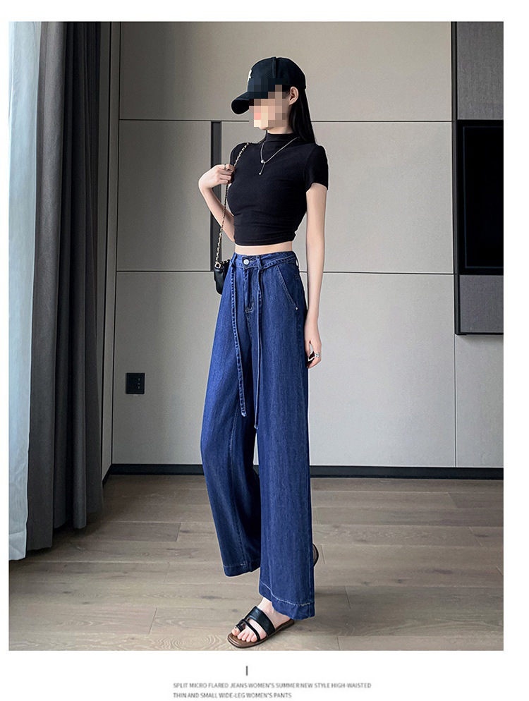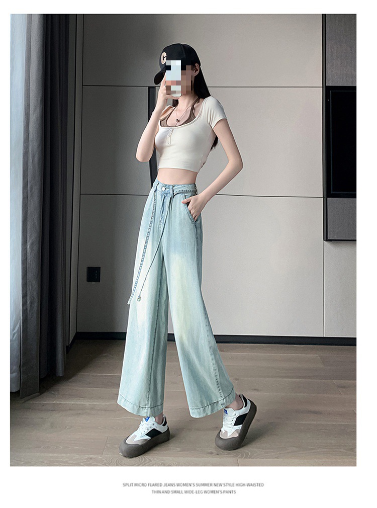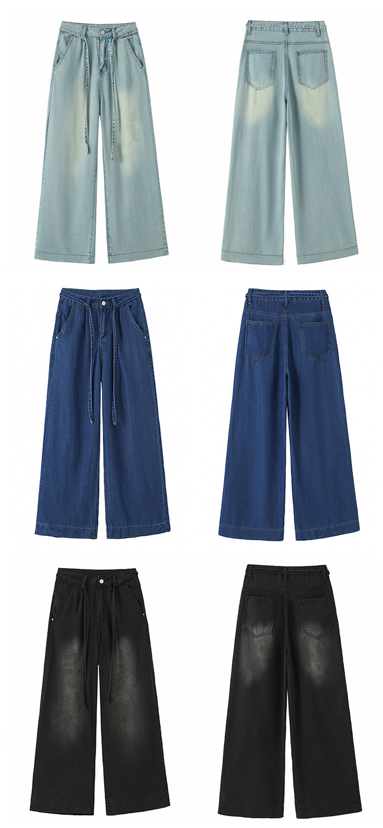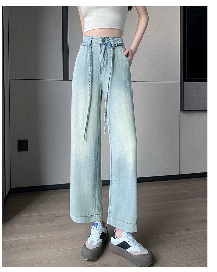 슈퍼 소프트 텐셀 수직 느슨한 와이드 레그 할머니 바지 그리기 Lyocell 쿨 간단한 9 포인트 작은 데님 여성스토어 가기